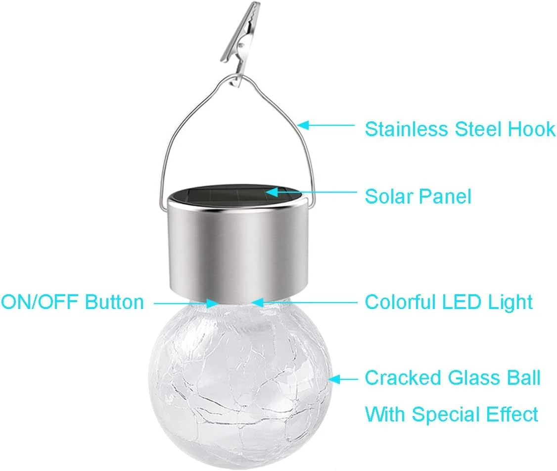 - Material: the hook of the light is made of stainless steel,the glass ball is featured with crackle design but very sturdy.