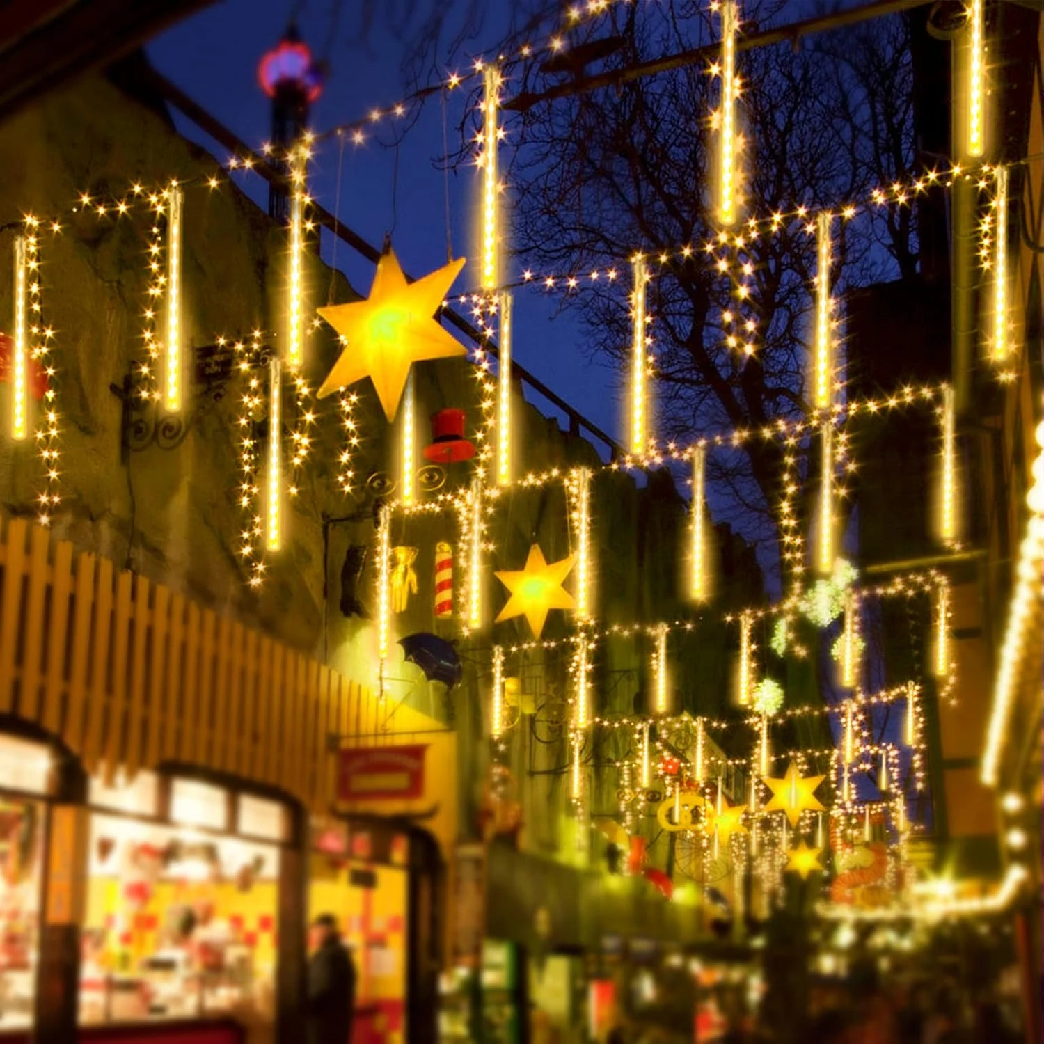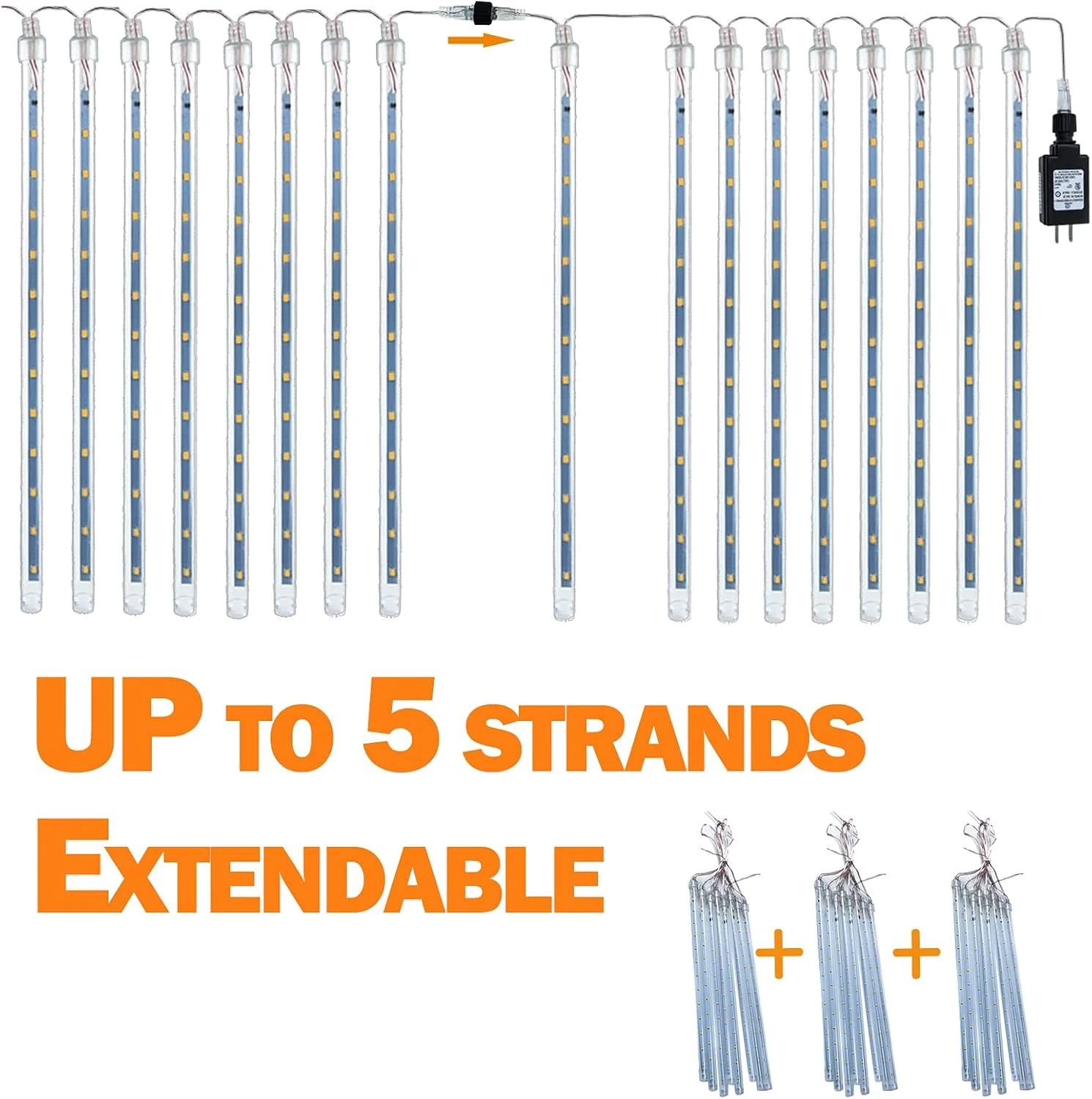- 【2-Pack 16 Tubes 384 LEDs Extendable Plug in Meteor Shower Lights for Outdoor Christmas Decor】: Super Bright with new upgraded LED bulbs, each bulb turn on and off one by one, like a realistic meteor shower.