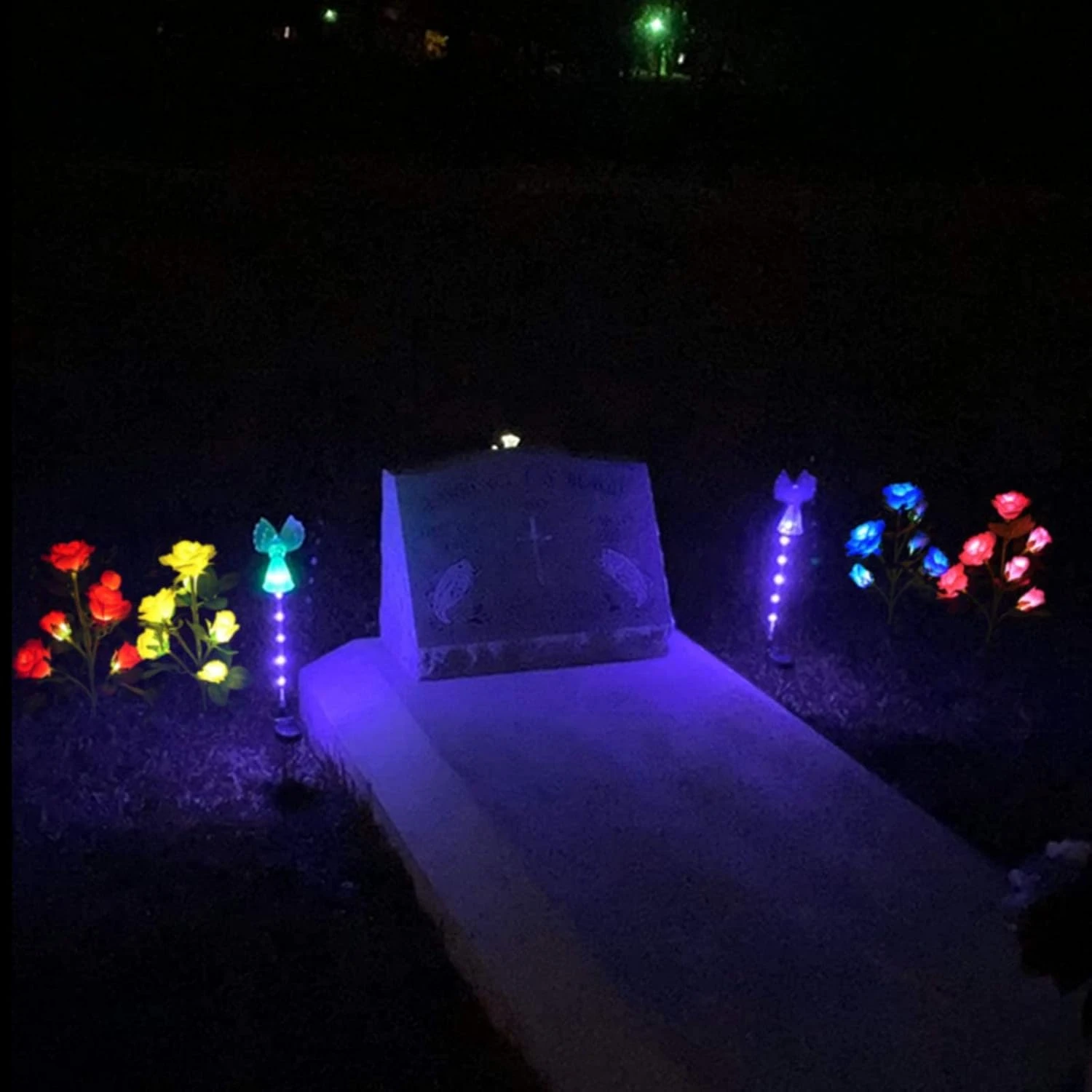 - 3. 【7-Multicolor Solar christmas garden/cemetery lights】:the ever-changing colors of the angel solar lights when it gets dark,7 rotating colors from white, pink, red, orange, green, purple to blue.