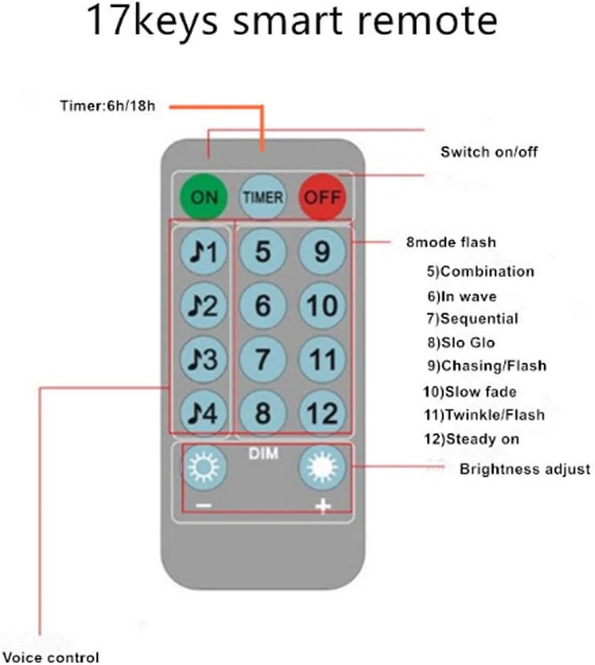 - [Adjustable brightness & Set timer]with the remote,you can adjust the brightness by DIM “+” and “-“.you can also set the time by the “TIMER” key,it will on 6 hours and off 18 hours.