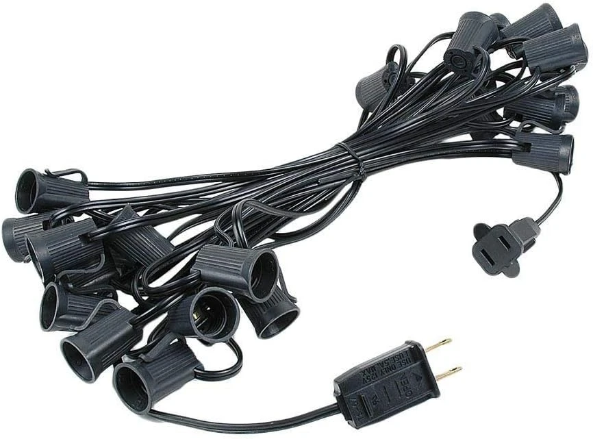- Enjoy our retro fit traditional C9 light set with a 25′ Black wire string and 25 ceramic opaque C9 light bulbs during the holidays, on your patio, gazebo, pergola, or special event. This light set is commonly referred as “retro” because it will remind you of the old fashioned type Christmas lighting that you would use on house or Christmas tree reminiscent of the 1950’s holiday decorations. Still classic to this day!!!