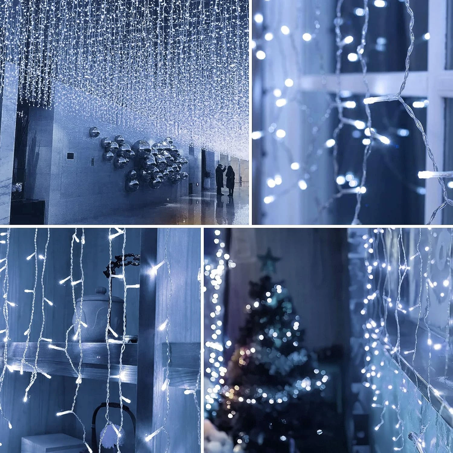 - 🎁 PERFECT HOLIDAY DECORATION: Warm white/cool white/multicolor icicle string lights is the best choice for holiday decoration, adding festival atmosphere to wedding, party, Valentine’s Day, Halloween, Christmas, Thanksgiving, New Year. Waterproof icicle string lights is suitable for yard, garden, bedroom, window, hedge, fence, prom, patio, eave, handrail stairs, indoor outdoor decoration.