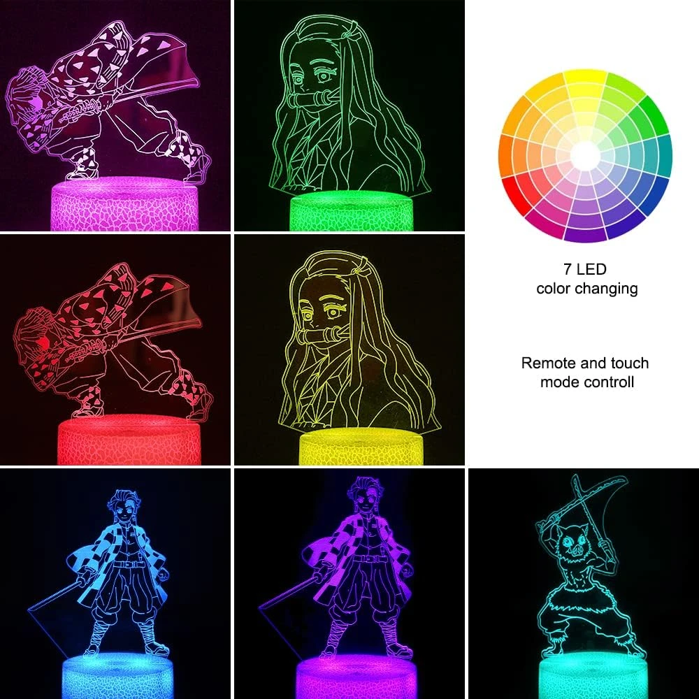 - Multicolor And Remote-controlled: Fully Color Customization by Remote Control with 16-color Display. You can Control Demon Slayer Action Figures Using Remote, or Touch Button on The 3D Led crack Lamp Base.