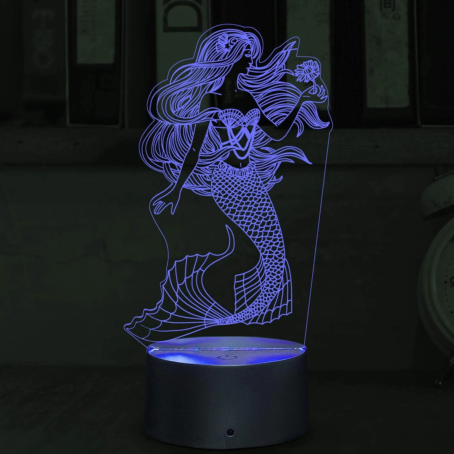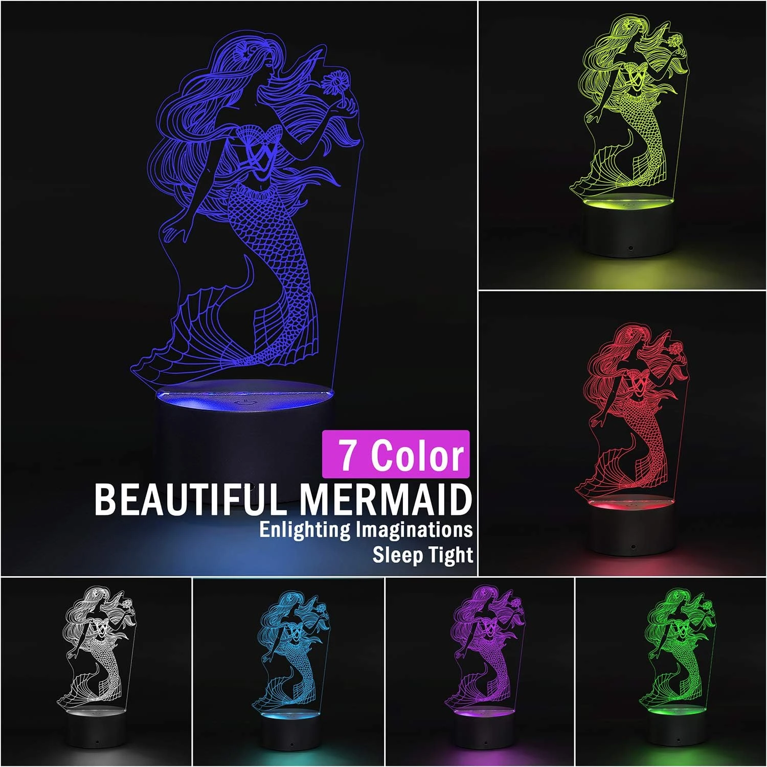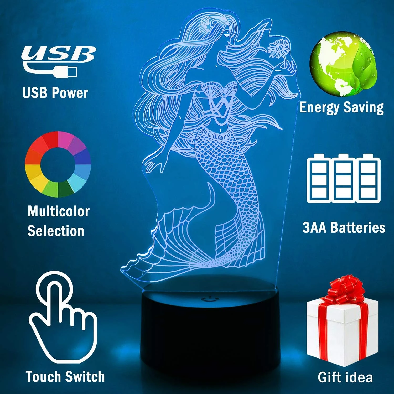 - Package Included – 3D Night Light Including Mermaid Acrylic Plate, 1 ABS lamp base, 1 User Manual ,1 USB Cable.Not include battery.