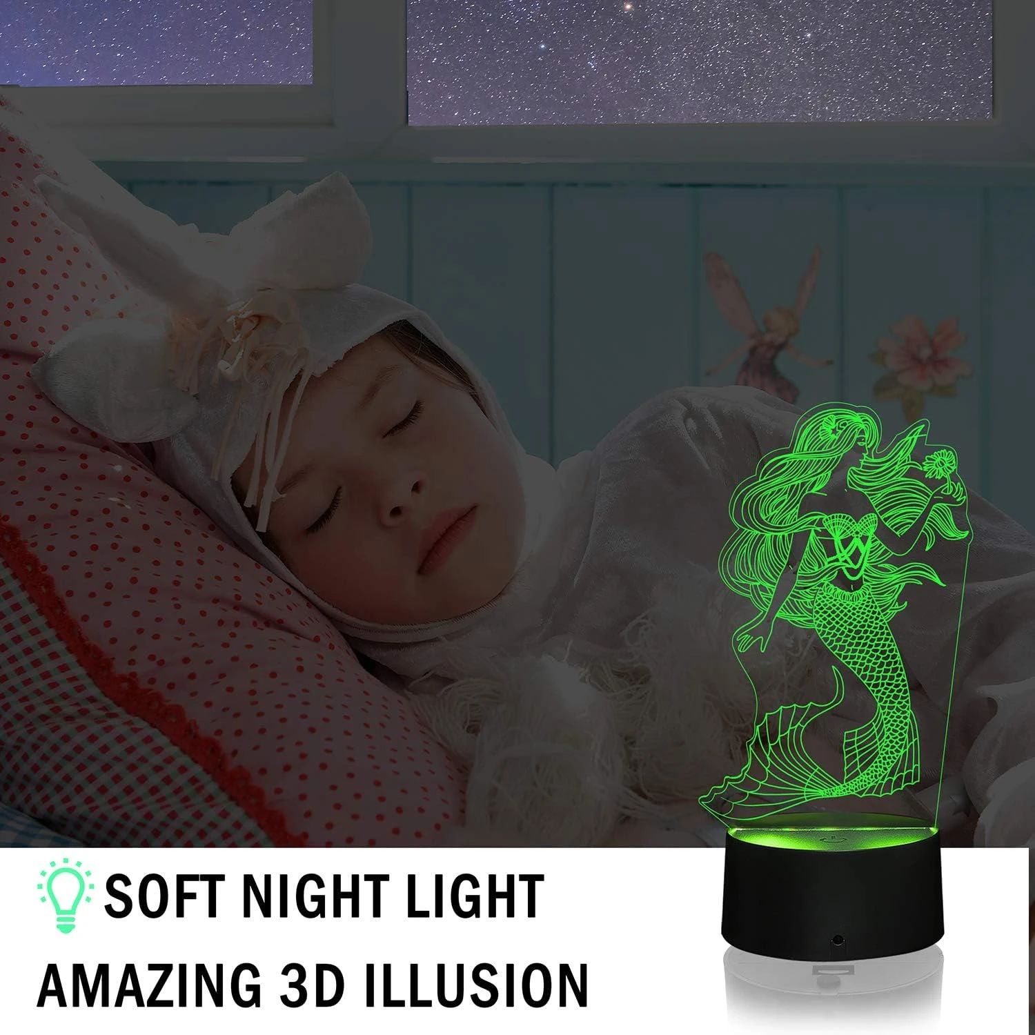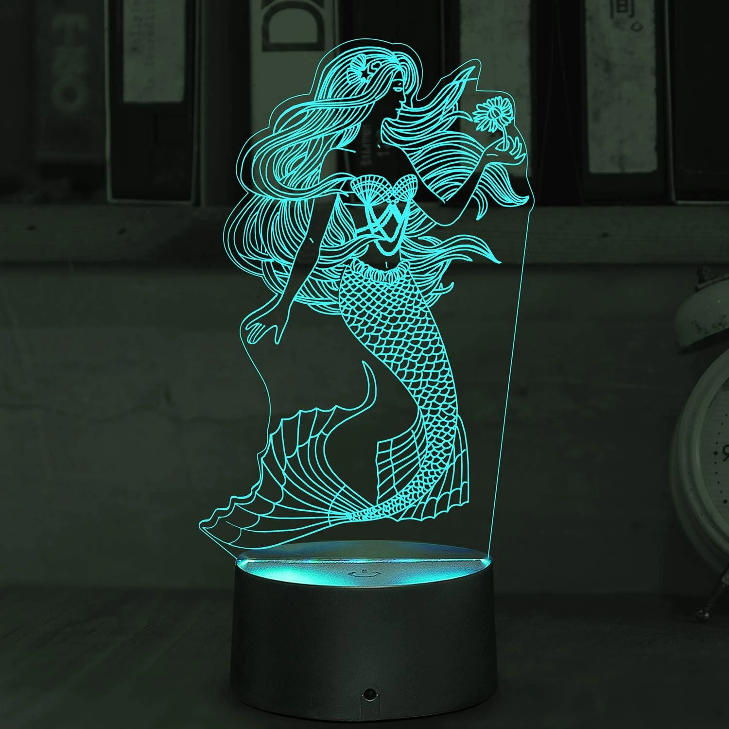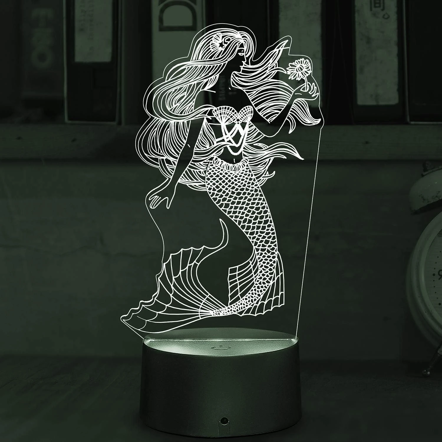 - Package Included – 3D Night Light Including Mermaid Acrylic Plate, 1 ABS lamp base, 1 User Manual ,1 USB Cable.Not include battery.