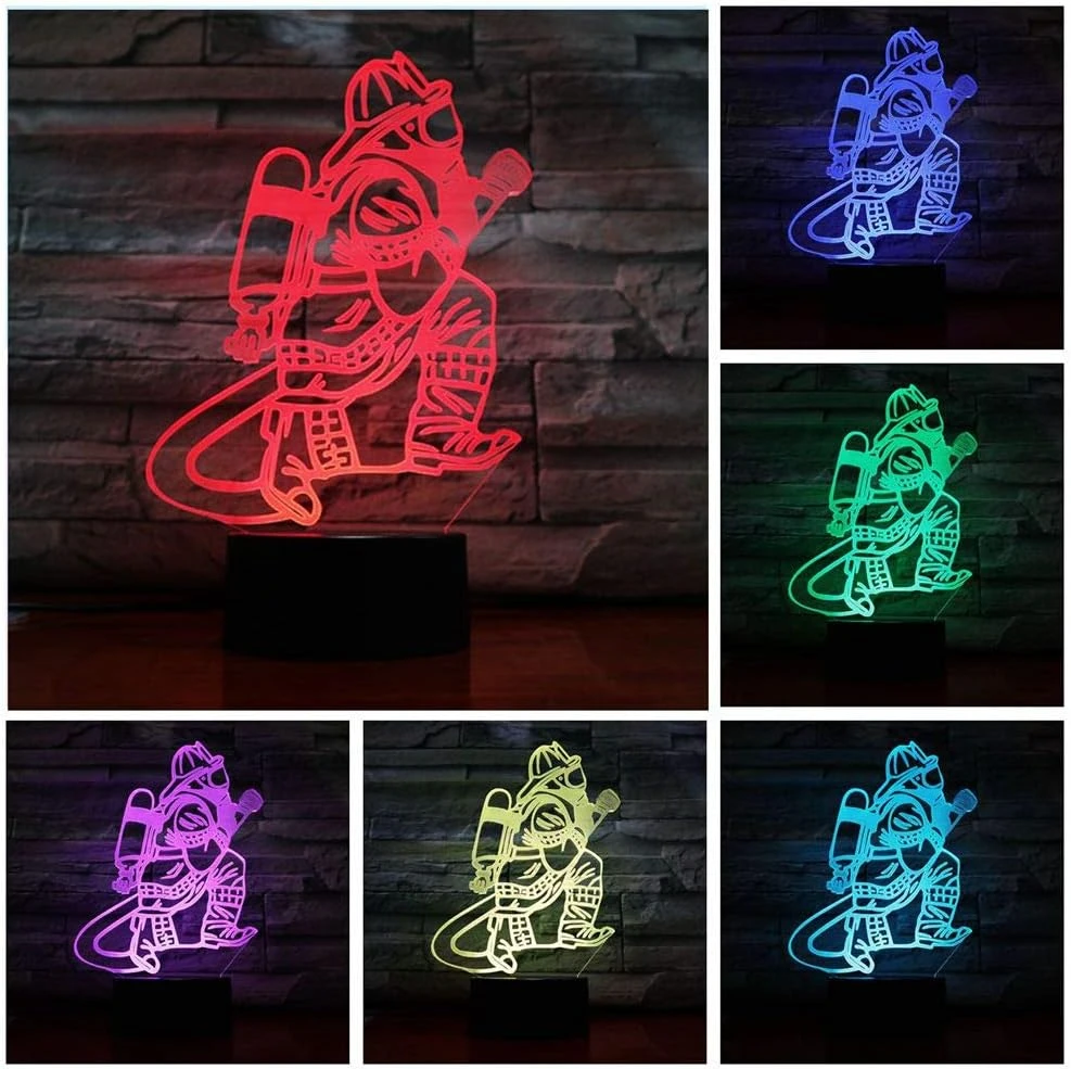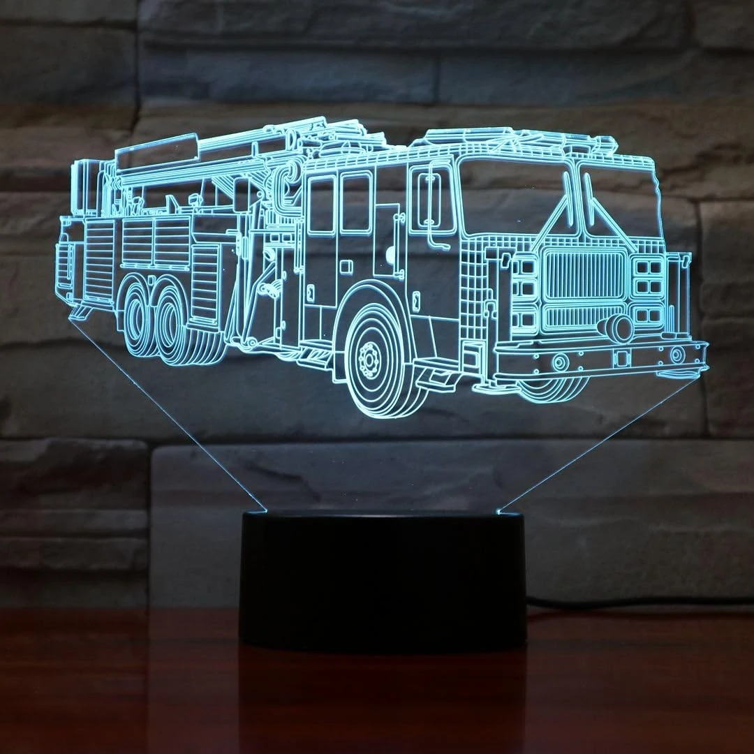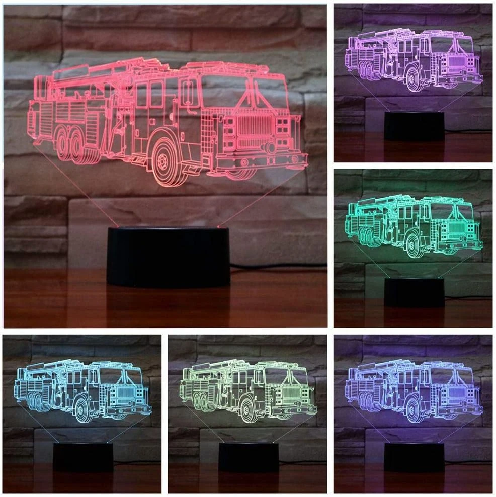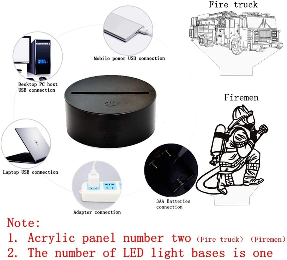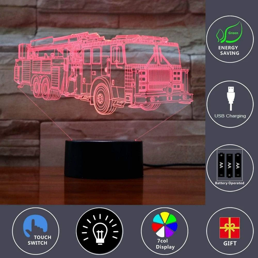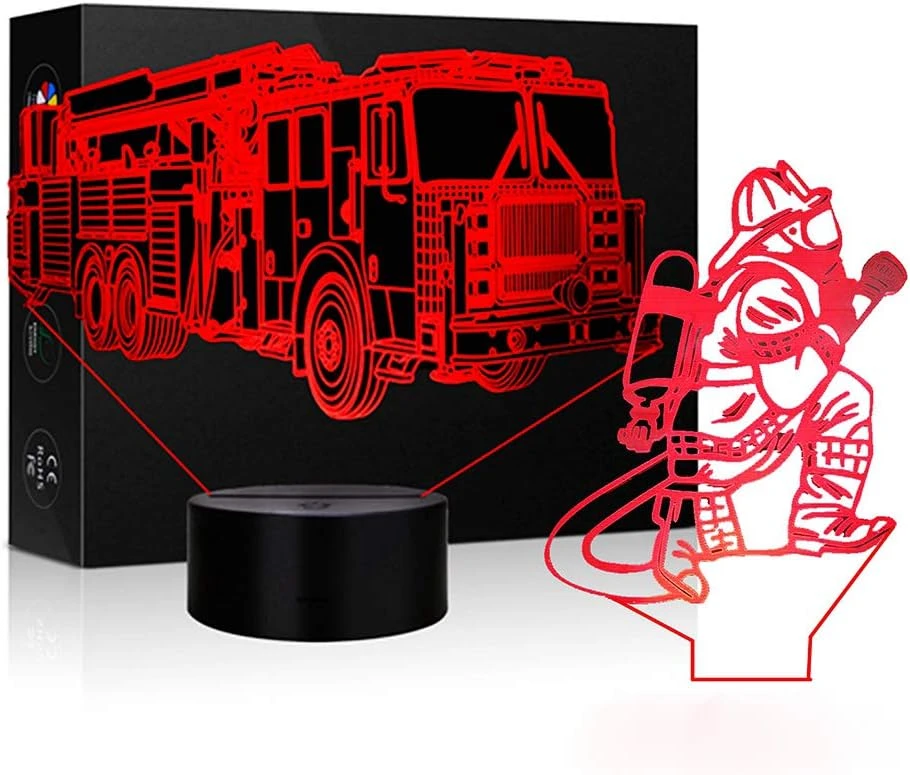- ☆【3D VISUAL EFFECT with 2 Different Design】— Creative 3D LED illusion night light has a nice 3D vision effect. Fire truck, Firemen cool design with 3D effect is much better in the dark;