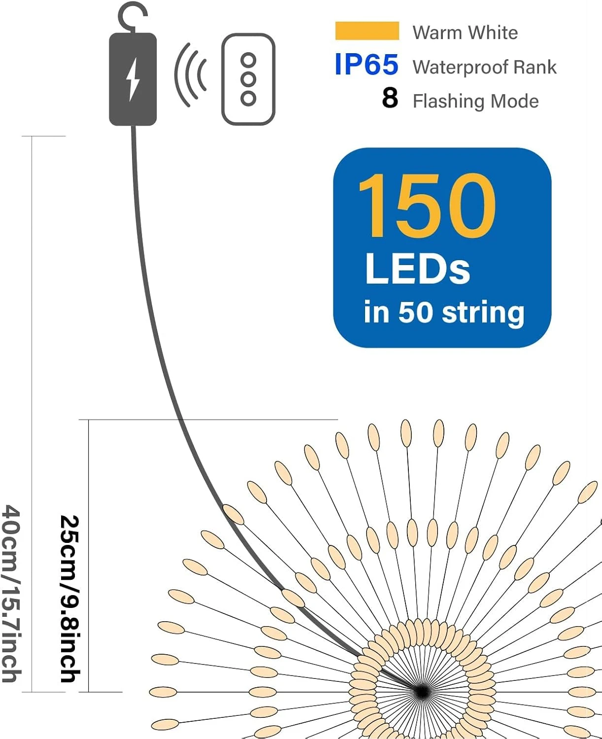 - FIREWORK LIGHT – The firework light contains 50 copper wires and 150 light beads. The copper wire is flexible and easy to fold into the shape you like.