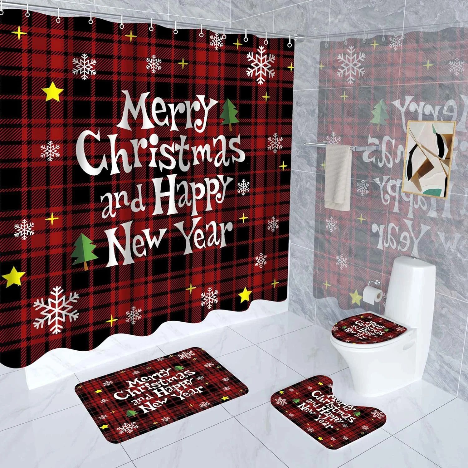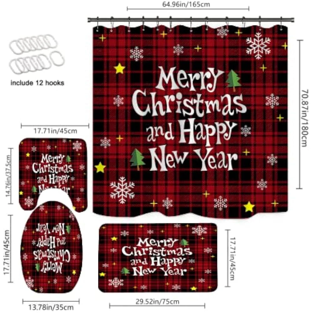 - 【Easy To Hang】The Christmas Red Buffalo Plaid Bathroom Set With 12 Free Strong Hooks Come For You To Install Easily.You Can Use This Christmas Tree Shower Curtain Sets To Decorate Your Bathroom, Wall, Window And Any Space Where You Like.