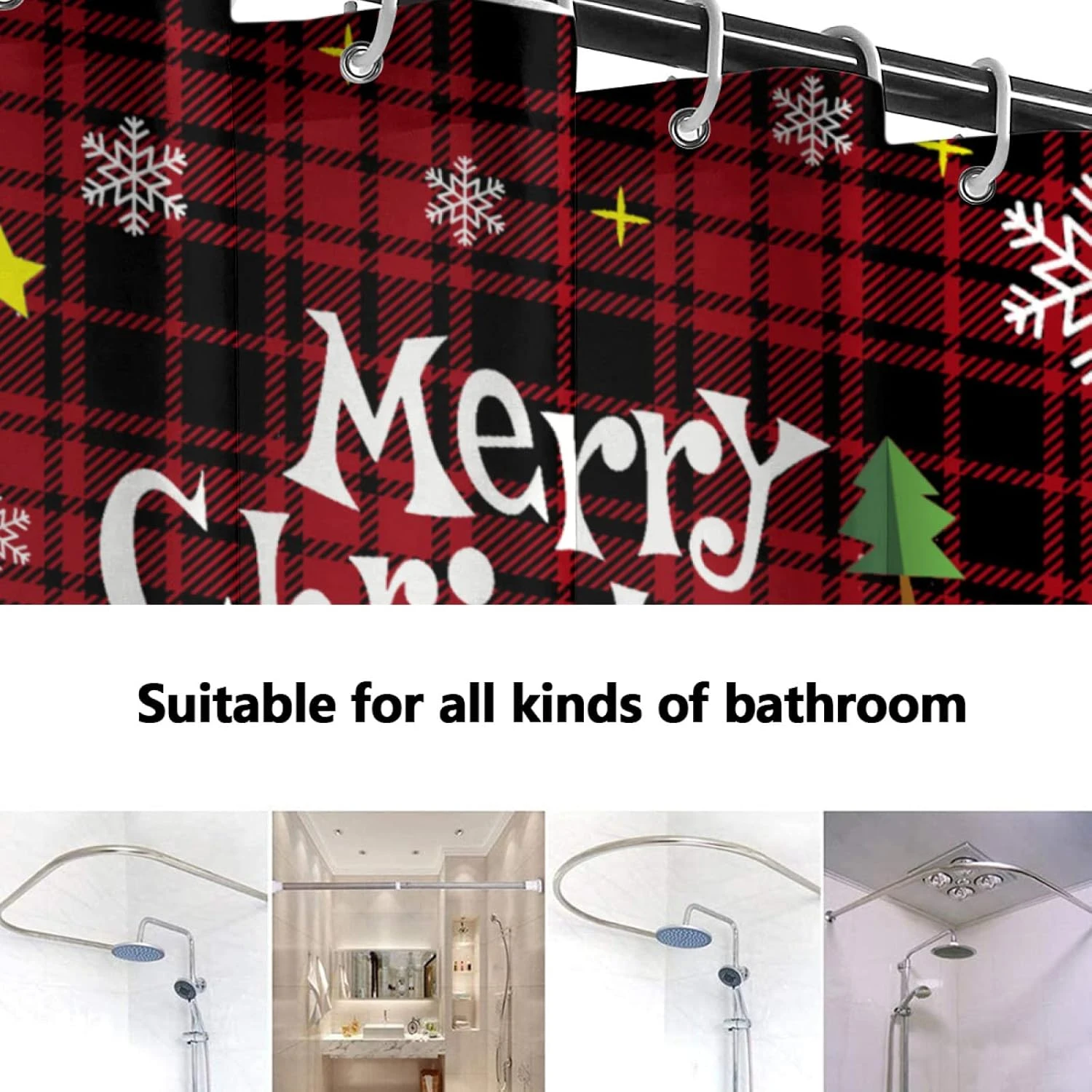 - 【Materials】 Christmas Red Buffalo Plaid bathroom shower curtain Is Made of soft and high-quality polyester cloth, which is waterproof, durable, and hygienic. This Christmas shower curtain has no chemical odor. Never cause any harm to you and your family. Easy to clean and dry fast.