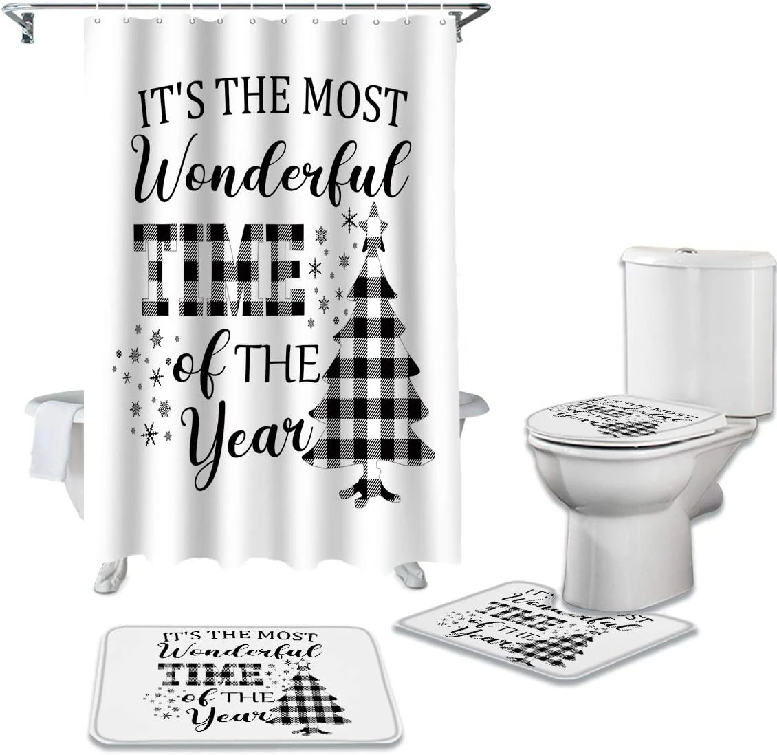 - 【Package & Size】1 printed shower curtain 66″ W x 72″ L (include 12 C-type hooks), 1 Bath Mat: 20″ W x 32″ L, 1 Toilet Lid Cover: 16″ W x 18″ L and 1 Contour Mat: 16″ W x 20″ L. The bathroom set size fits most of standard bathroom