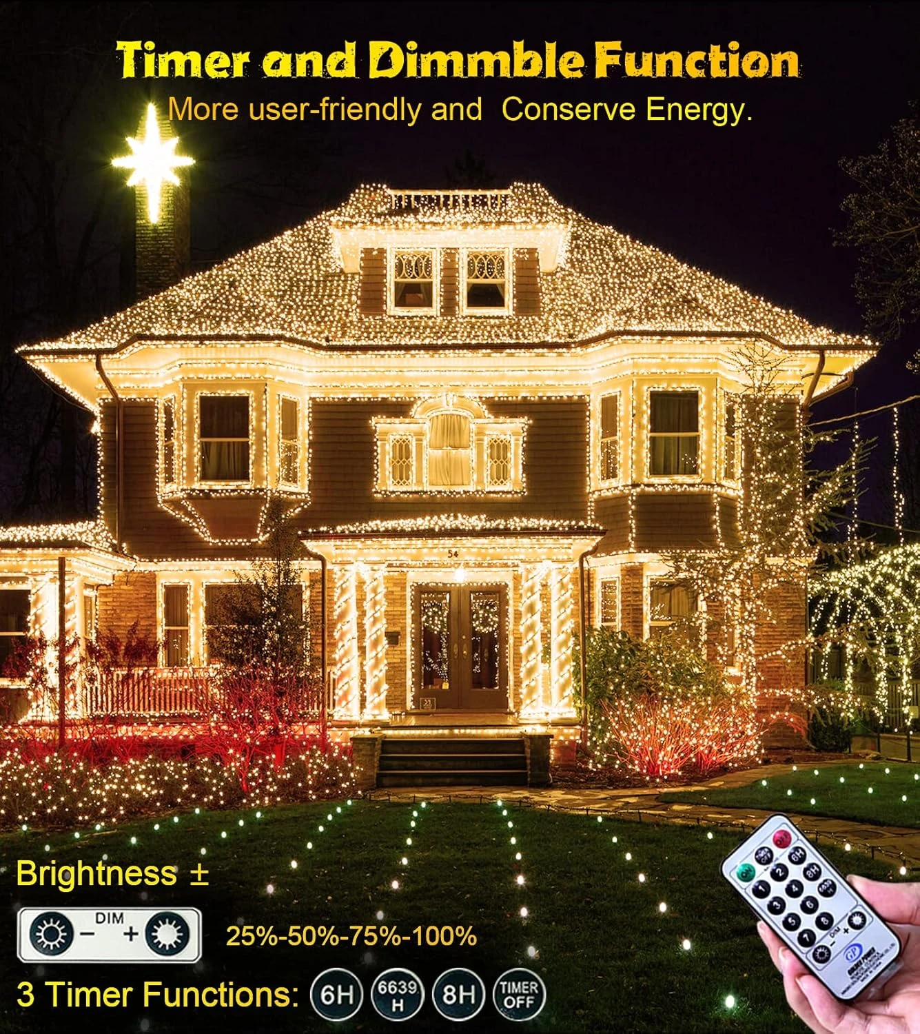 - 👍【More Comprehensive Functions】8 Lighting Modes ✔ Timer ✔ Memory✔8 options lighting modes make a playful addition to Christmas decor. Build in timer and memory, lights will auto on/off once set, don’t need to operate it manually. Saves your last lighting choice, which is more user friendly!