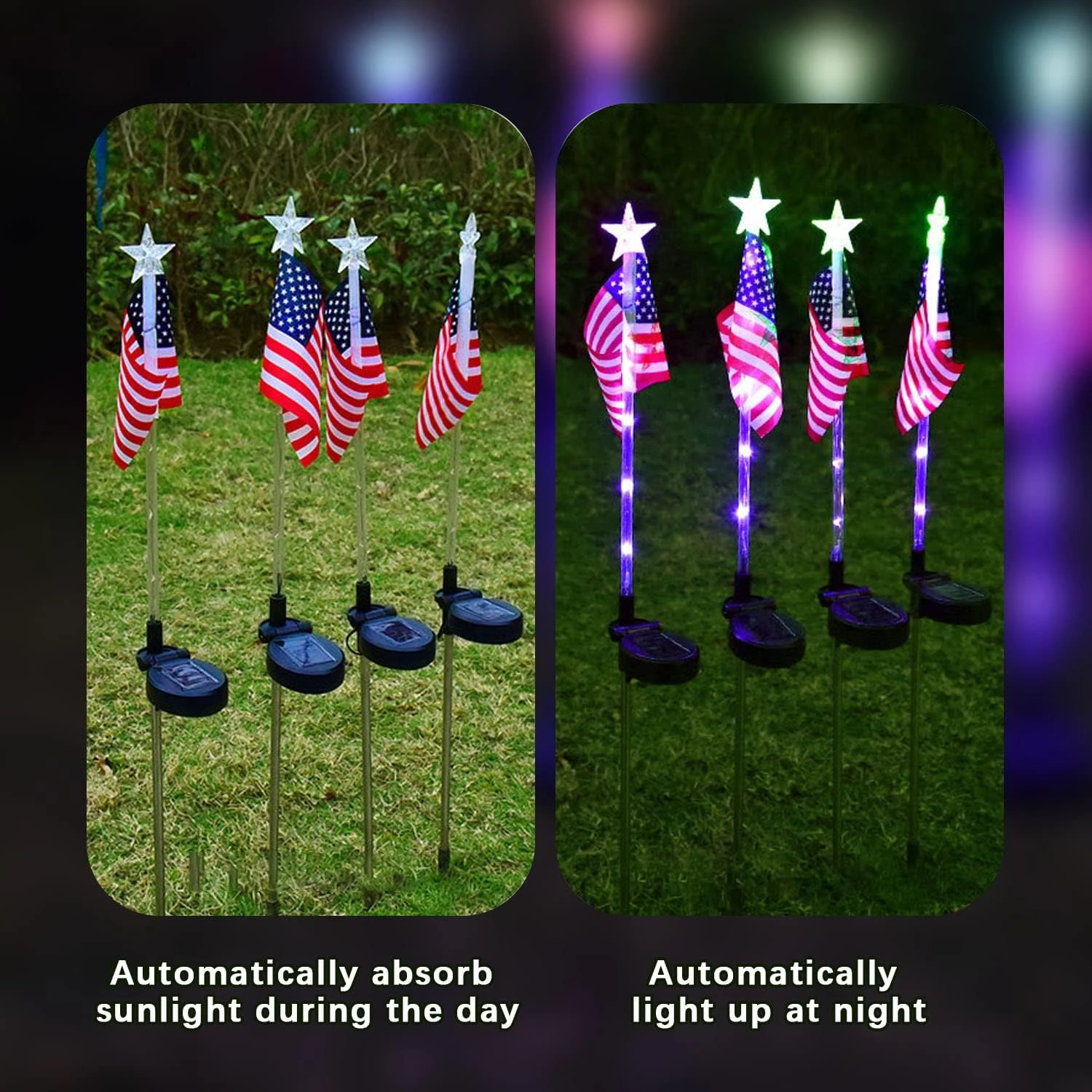 - 🚩【Solar American Flag Lights & Auto On/Off】Solar power supply with no additional utility bills and no need to replace batteries. The high-capacity 600ma environmentally friendly rechargeable battery can be used continuously for 20 hours, and the light sensor controls the solar light string to charge during the day and automatically turn on in the dark.