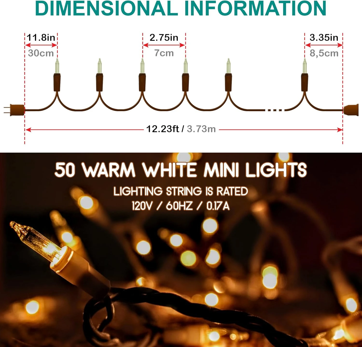 - SPECIFICATION – Lights count – 50 incandescent retro glass bulbs / Length – 12.25 feet (3.73 m) / Voltage – 120V / Electric current frequency – 60Hz / 0.17A