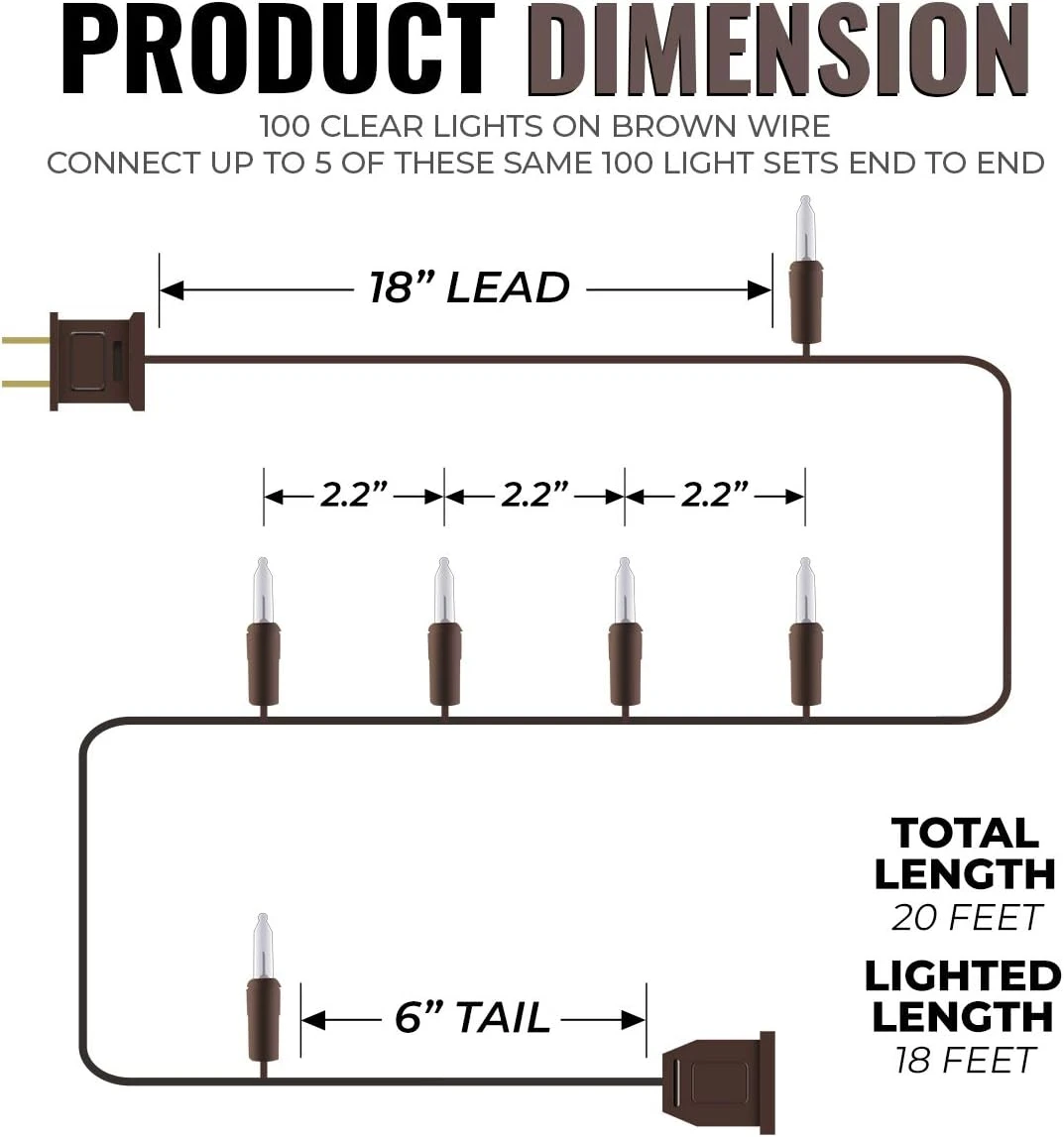 - 18’ of Lighted Length, 20’ of Total Length, 2.2” spacing between bulbs
