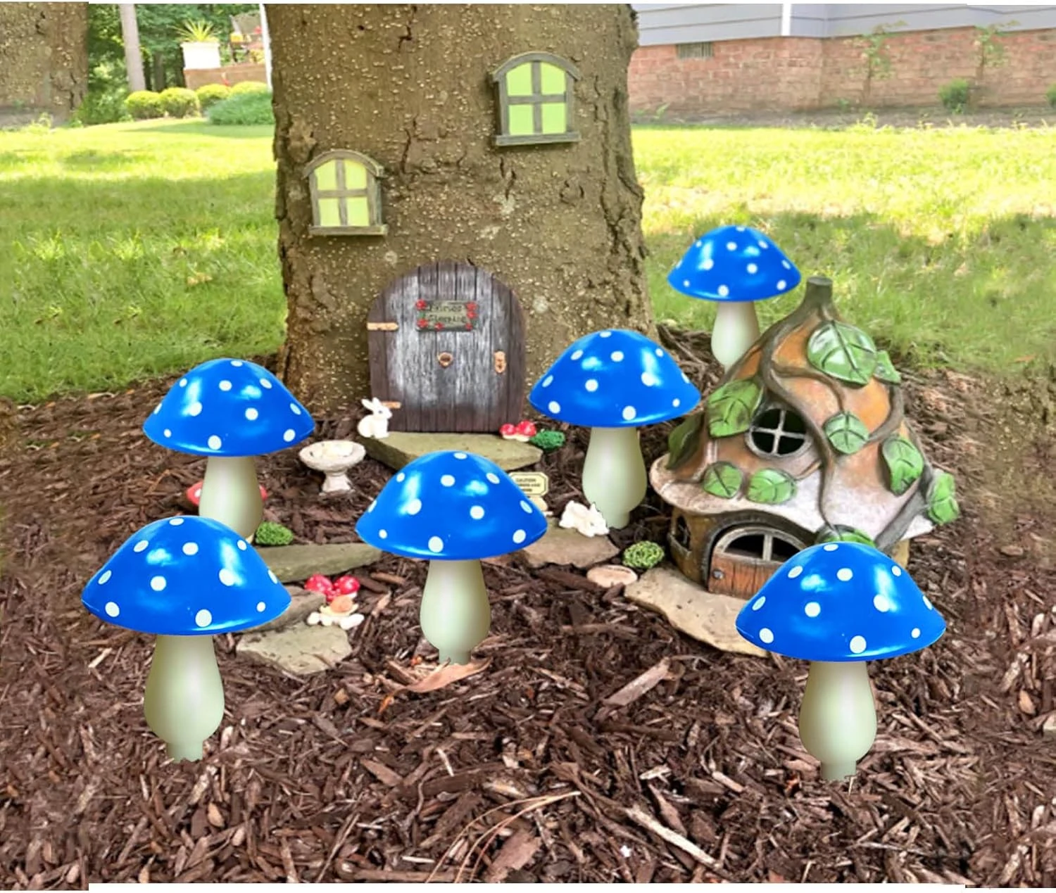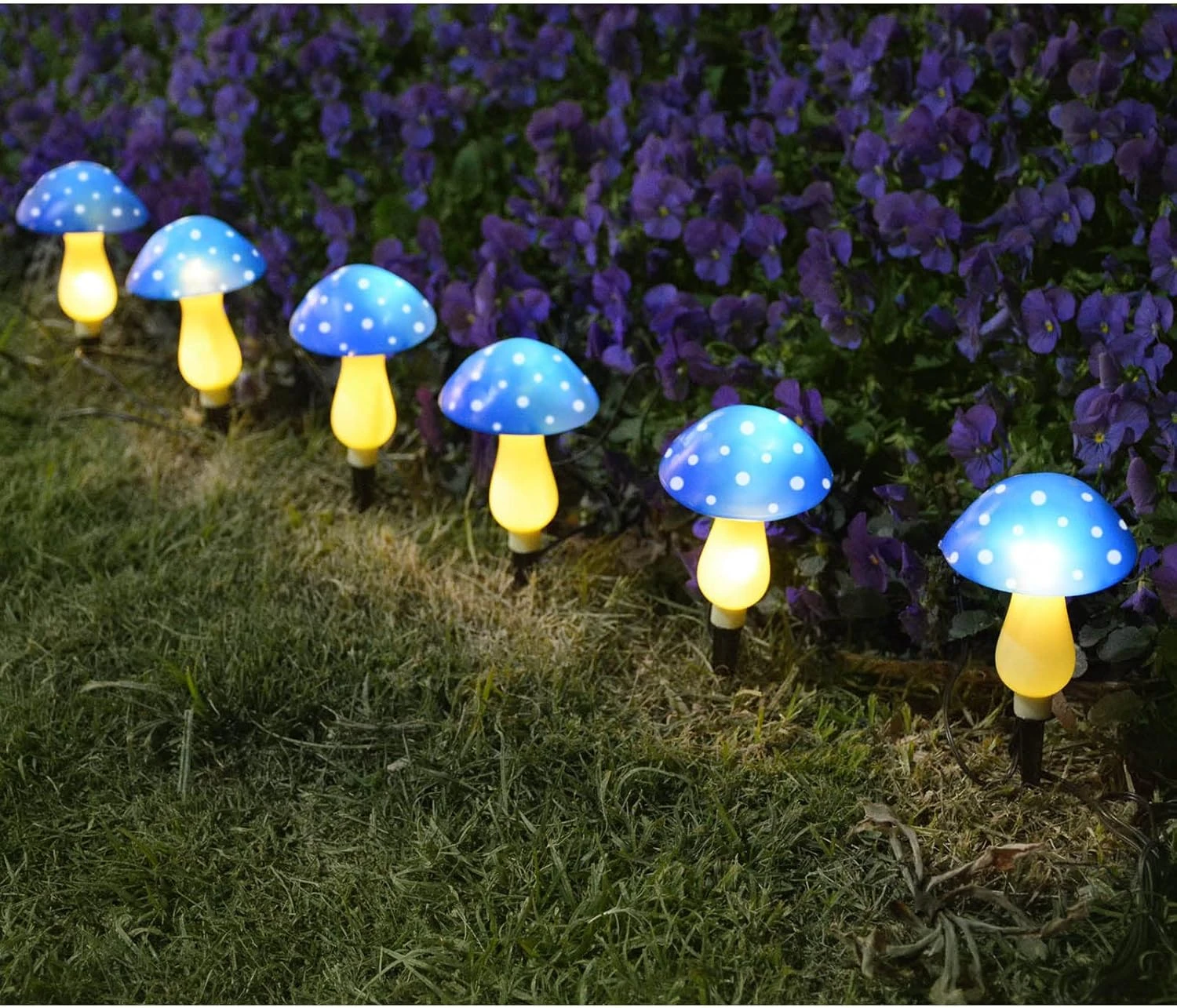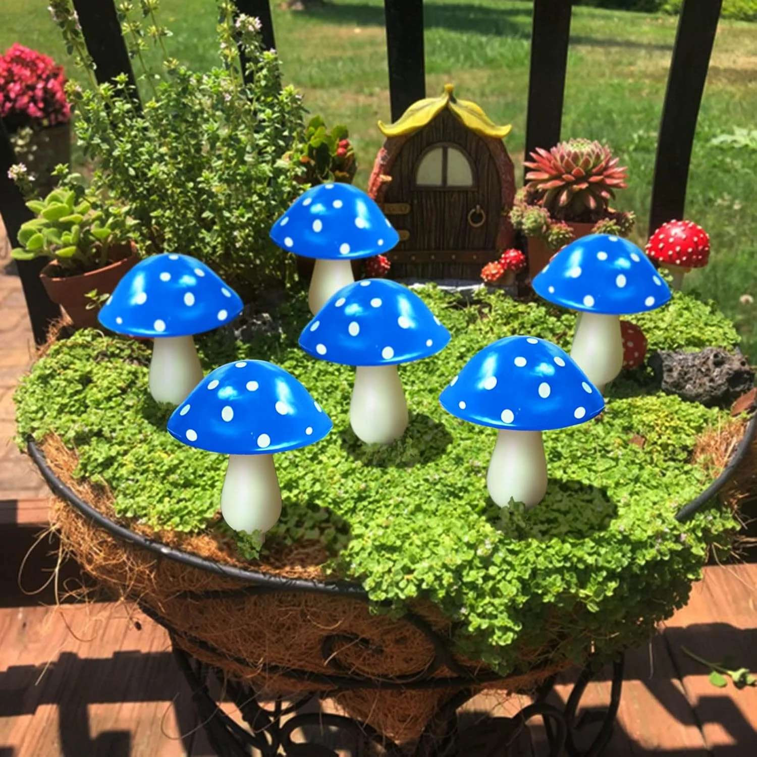 - 6 BLUE MUSHROOMS: 6 Blue Mushroom Each Set, Beautiful and Natural. They add a snap of colour and beauty to any outside garden.