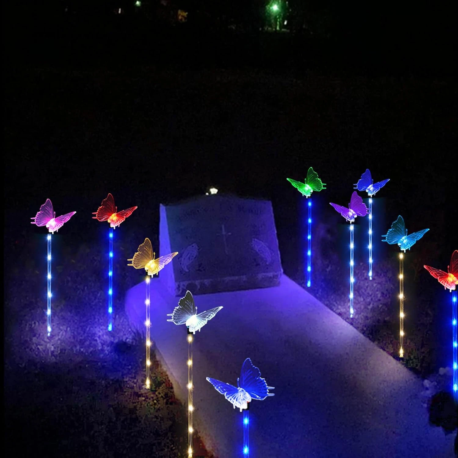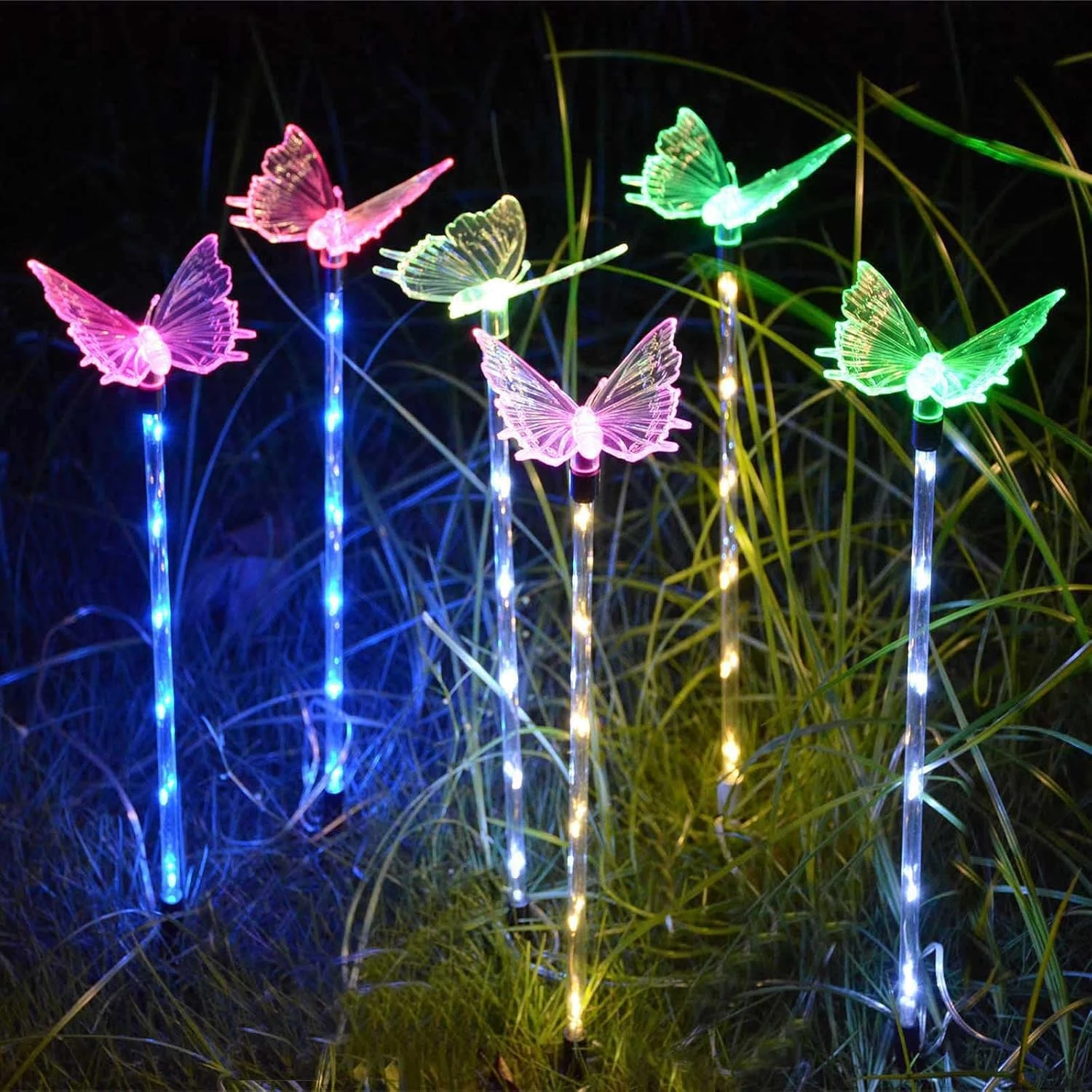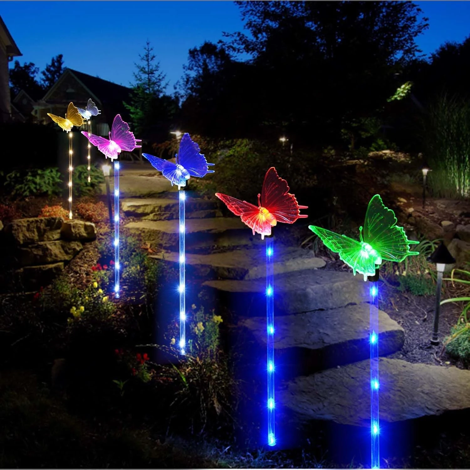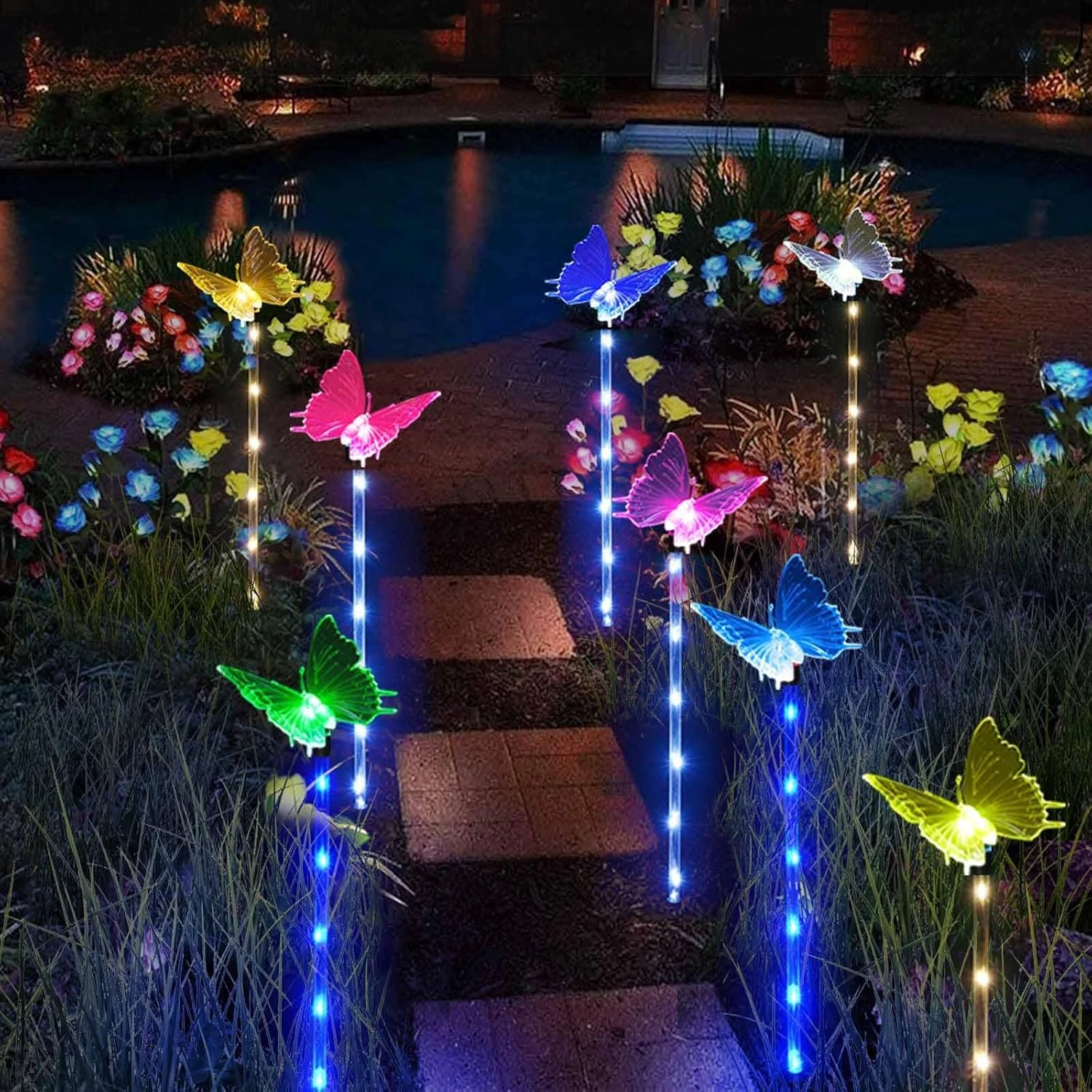 - 【New Style Butterfly Garden Decor】Lighted stakes with color changing butterflies, bright and cute for outdoor garden decor. Vivid butterflies flying in the flower at night!