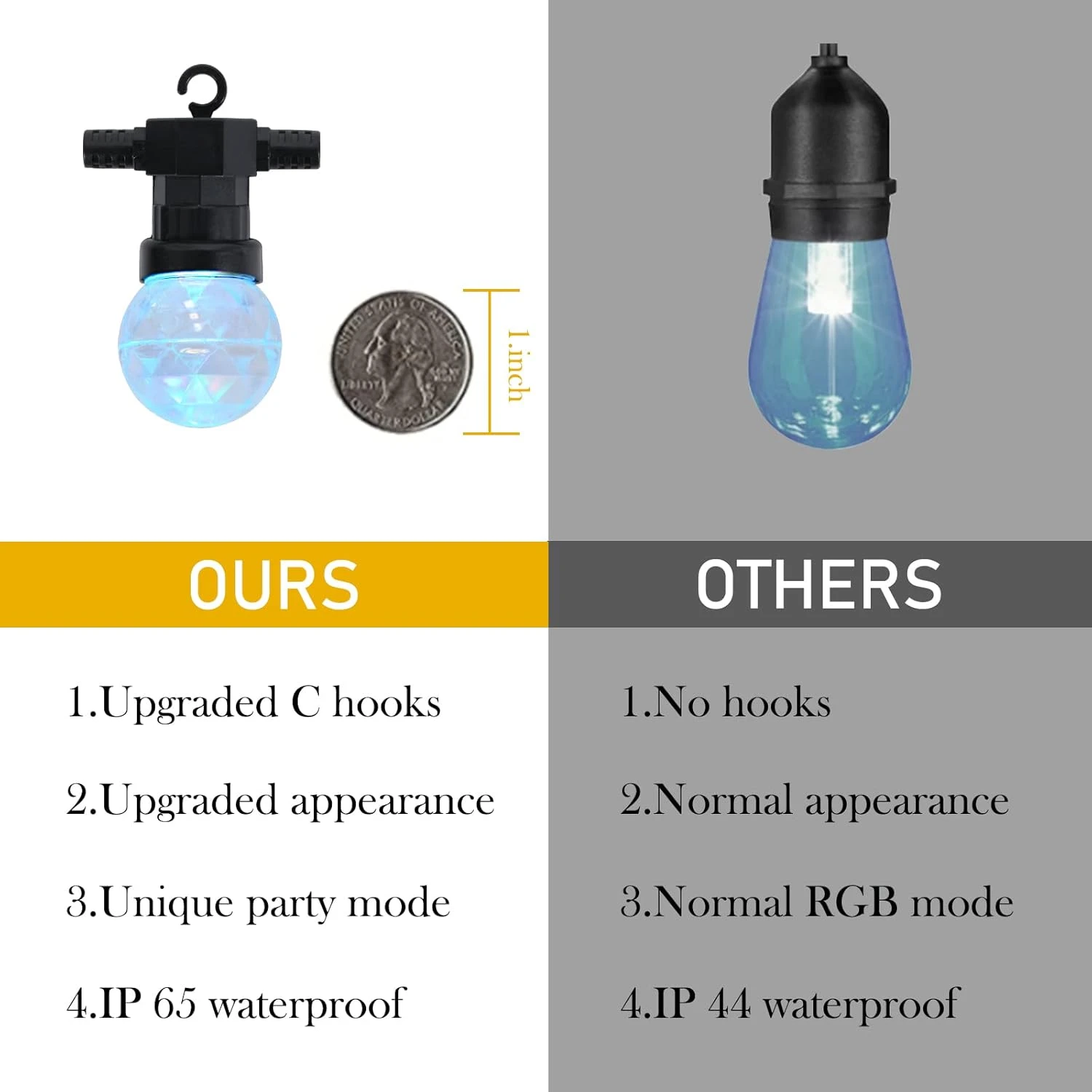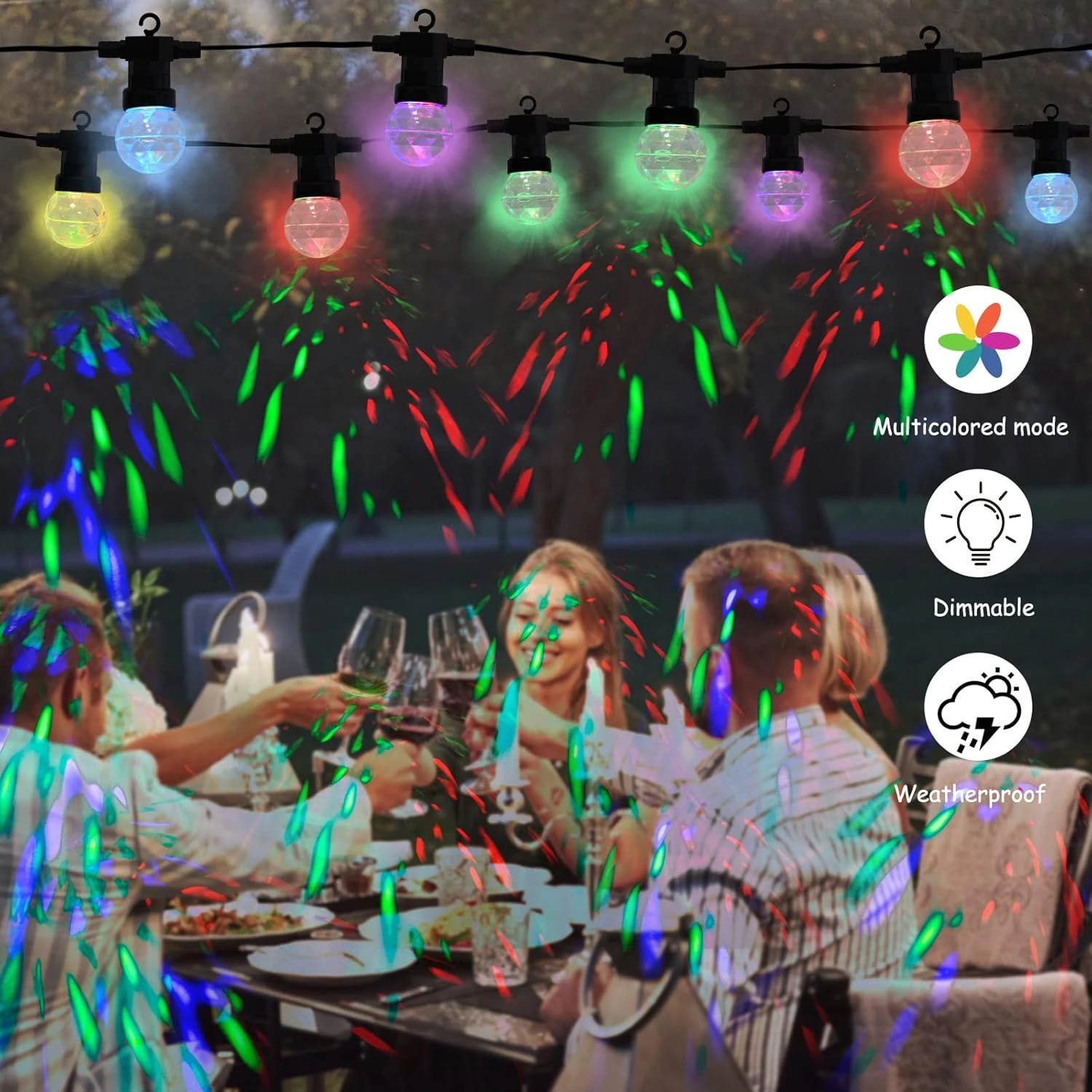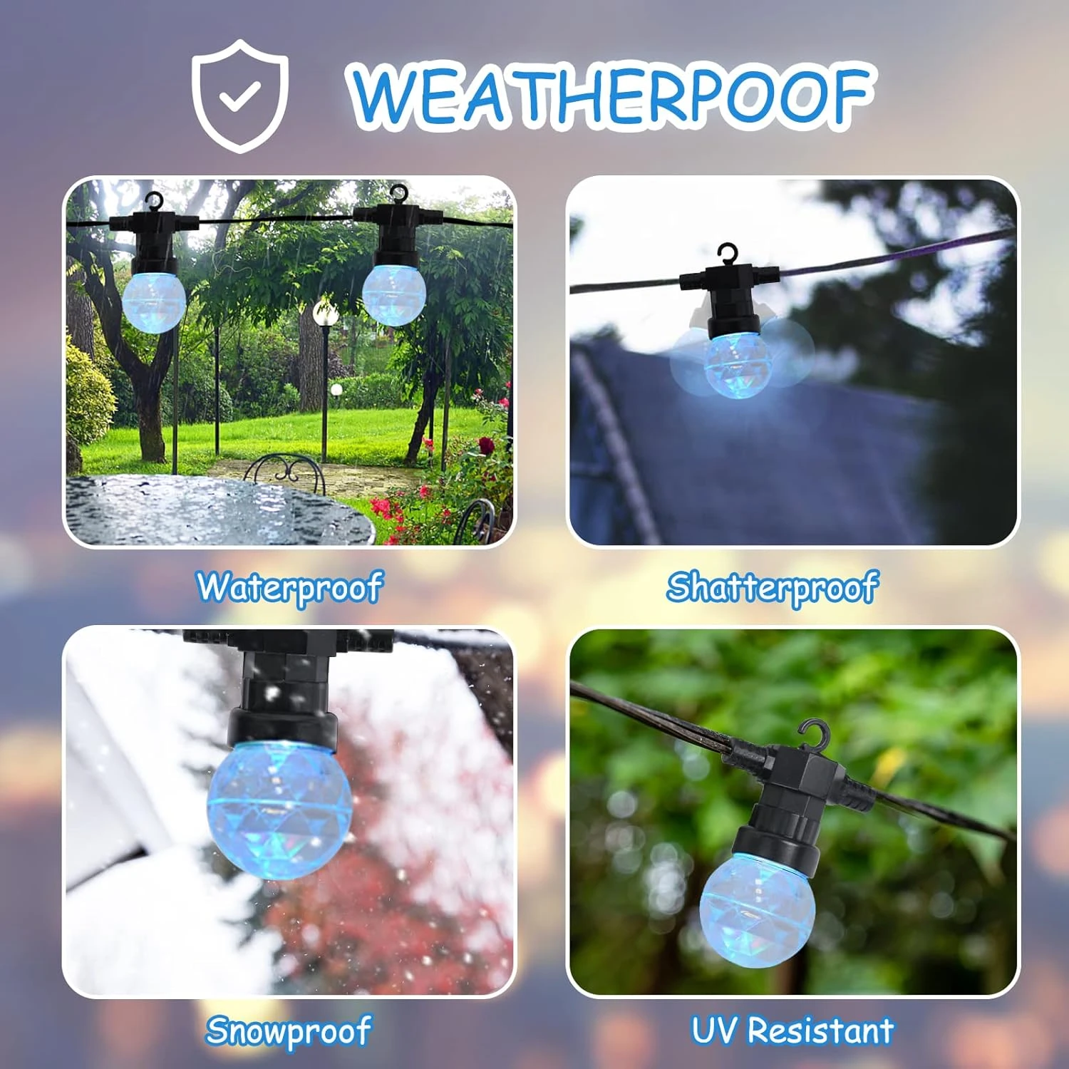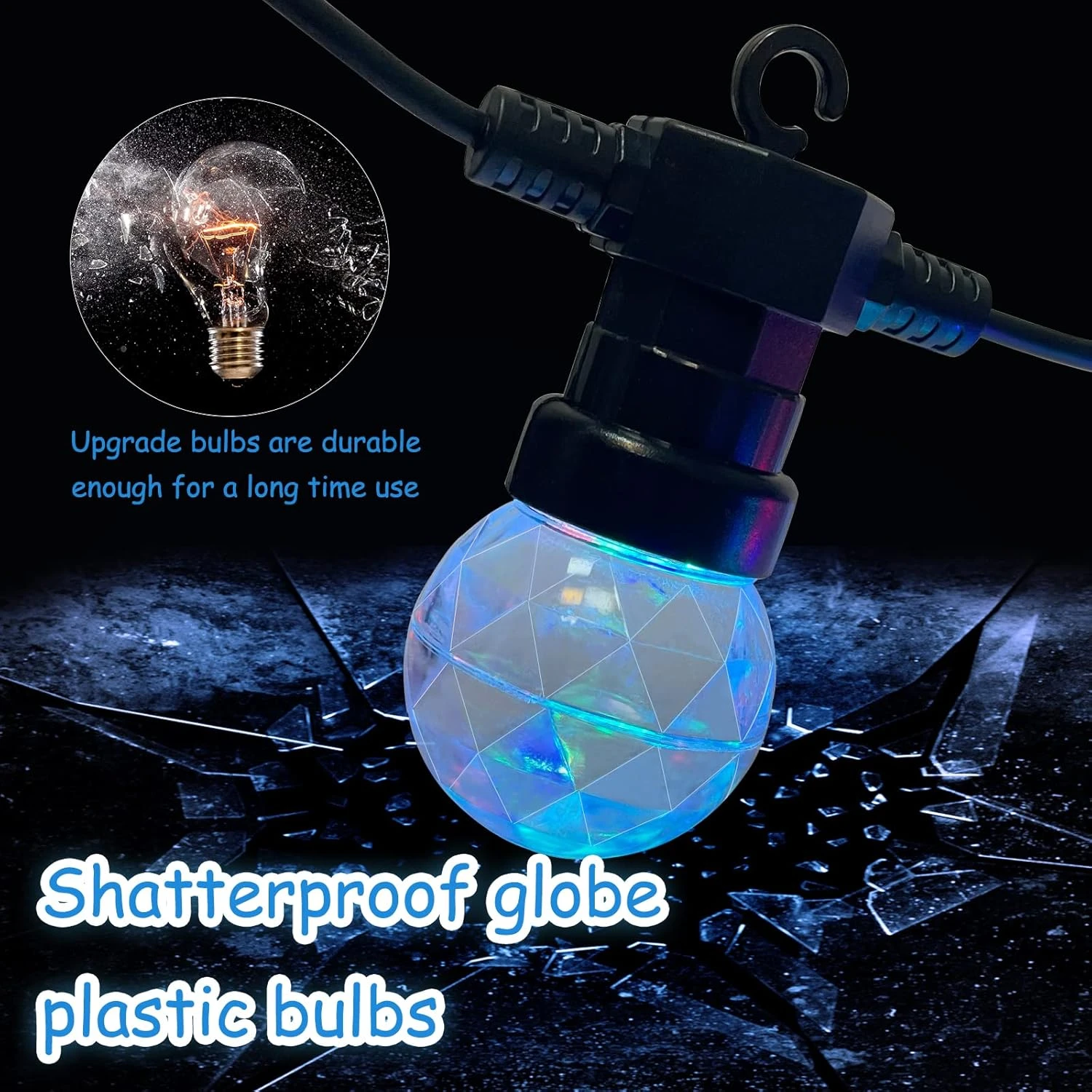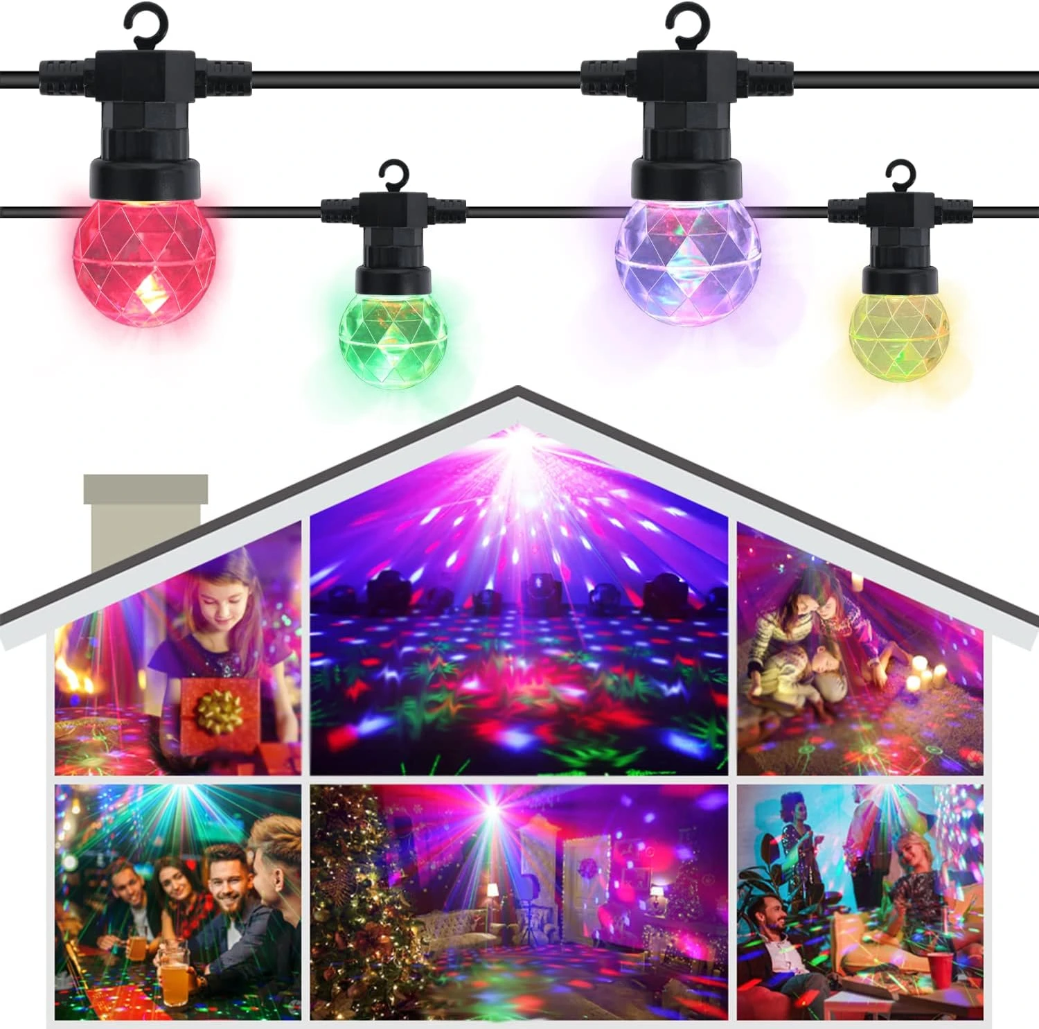 - 【Weatherproof & Shatterproof】This Disco Ball String Light is made with premium thick rubber flexible, and anti-collision upgraded plastic bulbs weather and water-resistant, perfect for indoor and outdoor use. Thus, worry-free about hanging string lights outdoor
