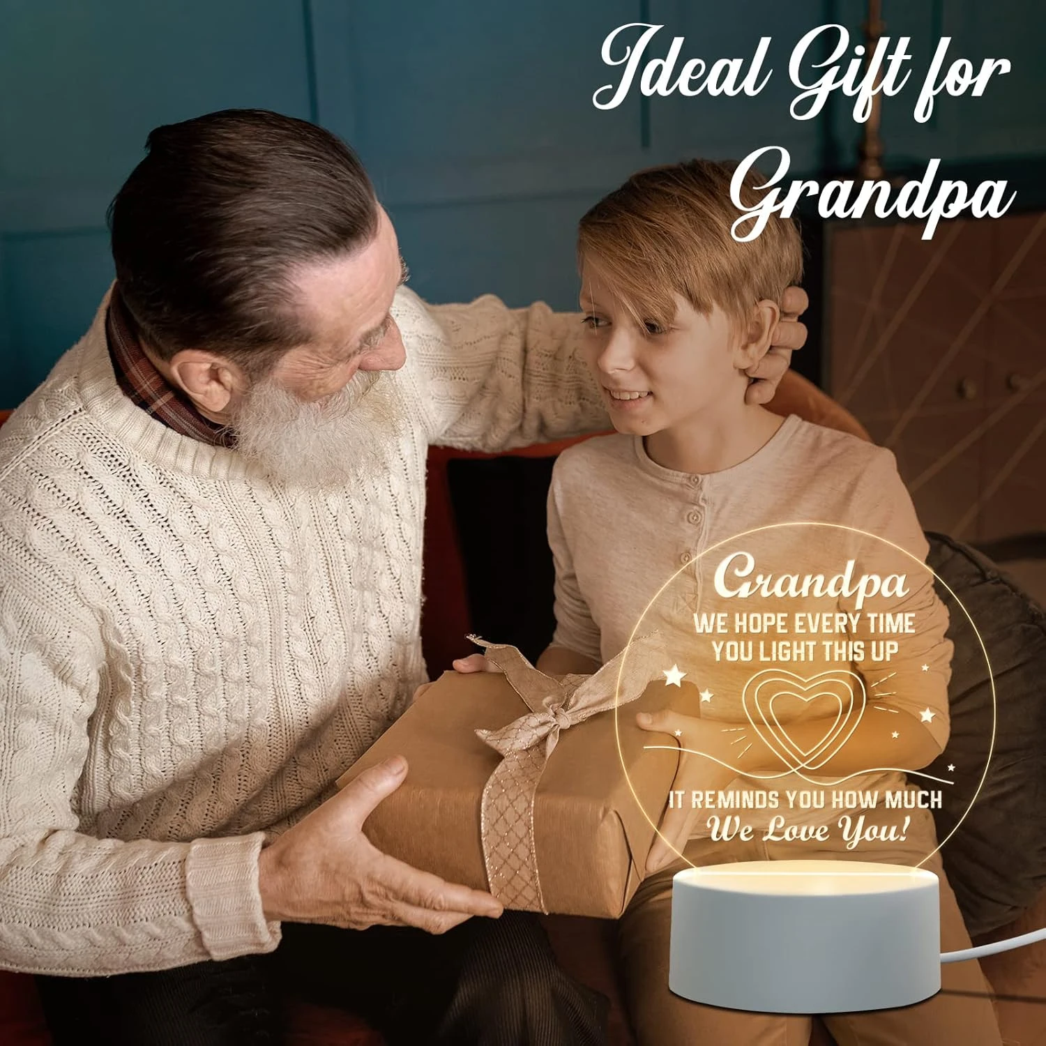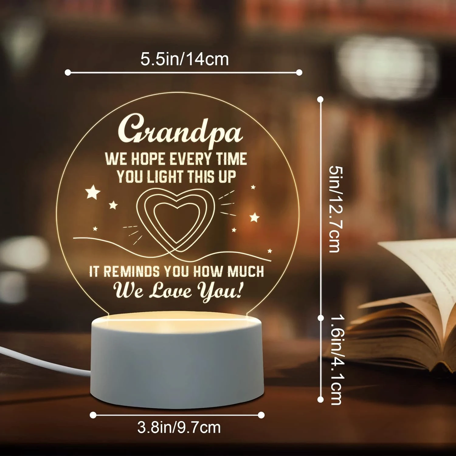 - 【PRESENT FOR GRANDPA AT ANY OCCASION】- Our engraved night light is made of high quality acrylic, is a perfect addition to any decorating scheme. Grandpa can put it on a bedside table, desk, shelves, or any flat surface. It is suitable for his bedroom, living room, etc. Perfect grandpa gifts for birthday, fathers day, Christmas, valentines day, grandparent’s day, Thanksgiving or any other days to celebrate.
