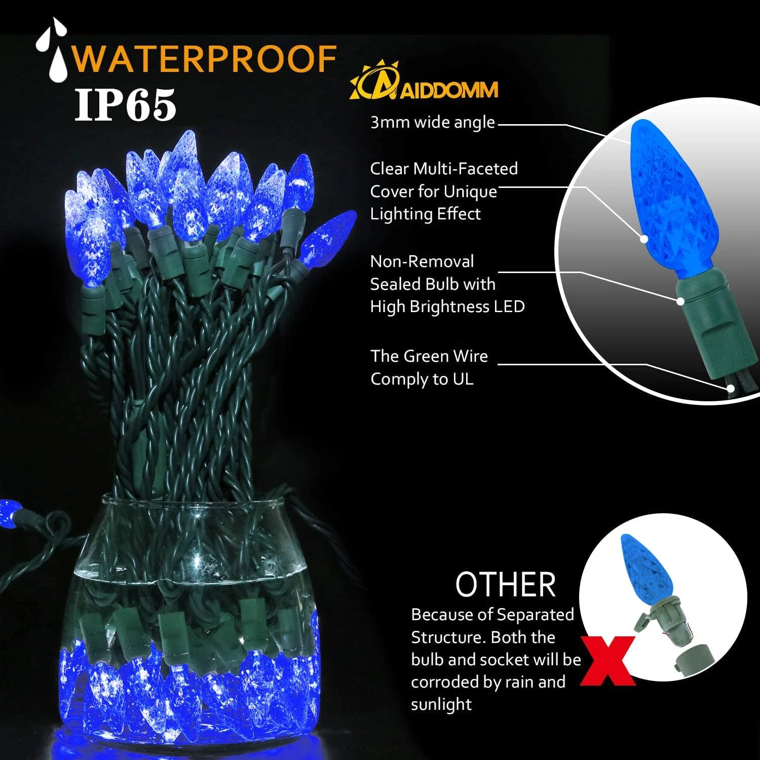 - 💡 UL Approved, Safe and Reliable Blue LED Lights: C6 bulbs are smaller than C7 or C9, larger than traditional mini lights, UL approved; approved for indoor/outdoor use, If one light goes out, the rest stay lit.