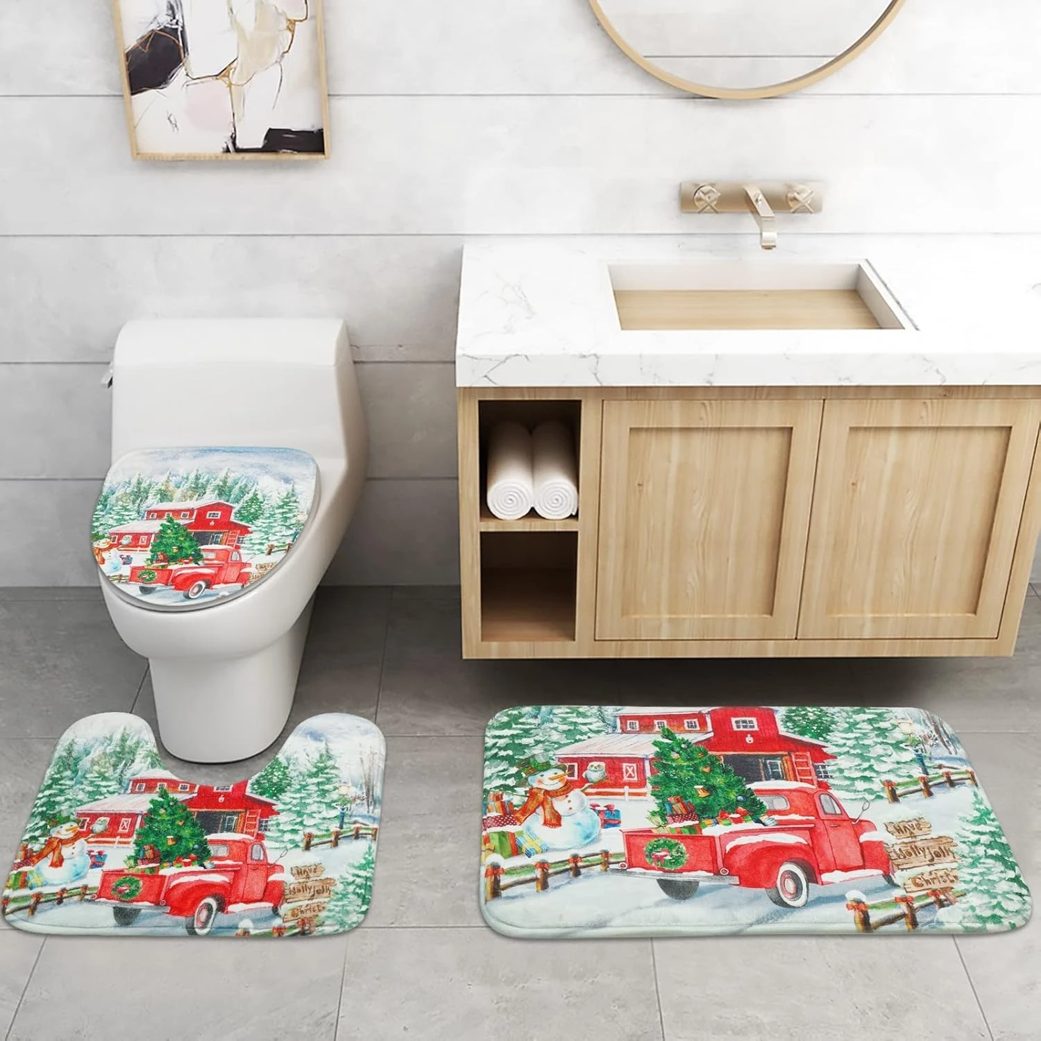 - 【Christmas Bathroom Rugs】The strong enhanced anti-slip bathroom rug / U type rugs contains soft flannel cover which adds an extra touch of luxury. Also rebound easily. Quick-dry, highly absorbent and durable. The Christmas bathroom rugs have a non-slip TPR backing to avoid slipping.