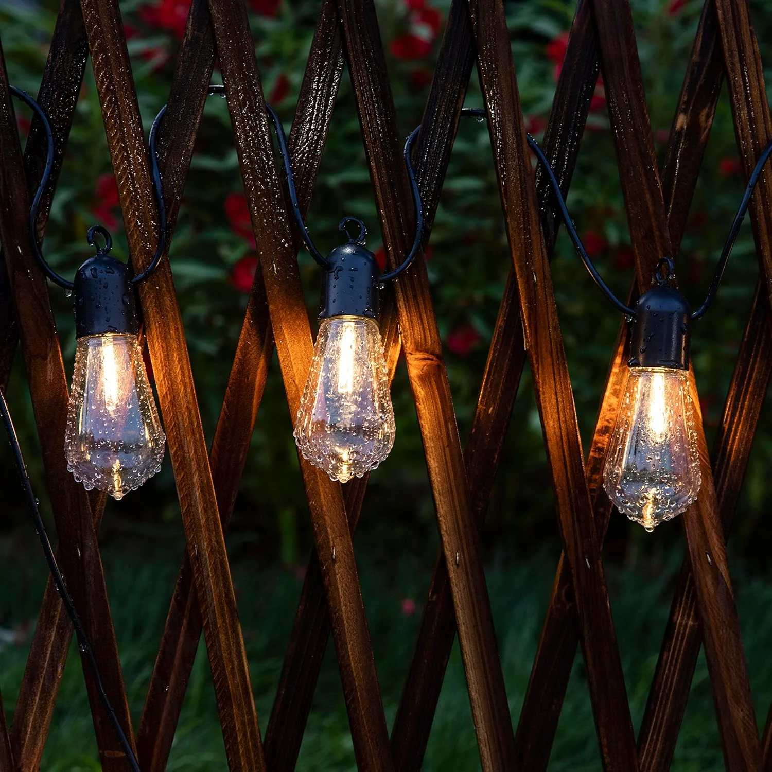 - 【Easy Anywhere Installation】 – No outlet required. The outdoor string lights solar include a ground stake and screws to mount the panel on pergolas, fences, walls and more. The solar panel gets maximum sun exposure. Easily decorate patios, yards, gardens, porches, balconies and beyond!