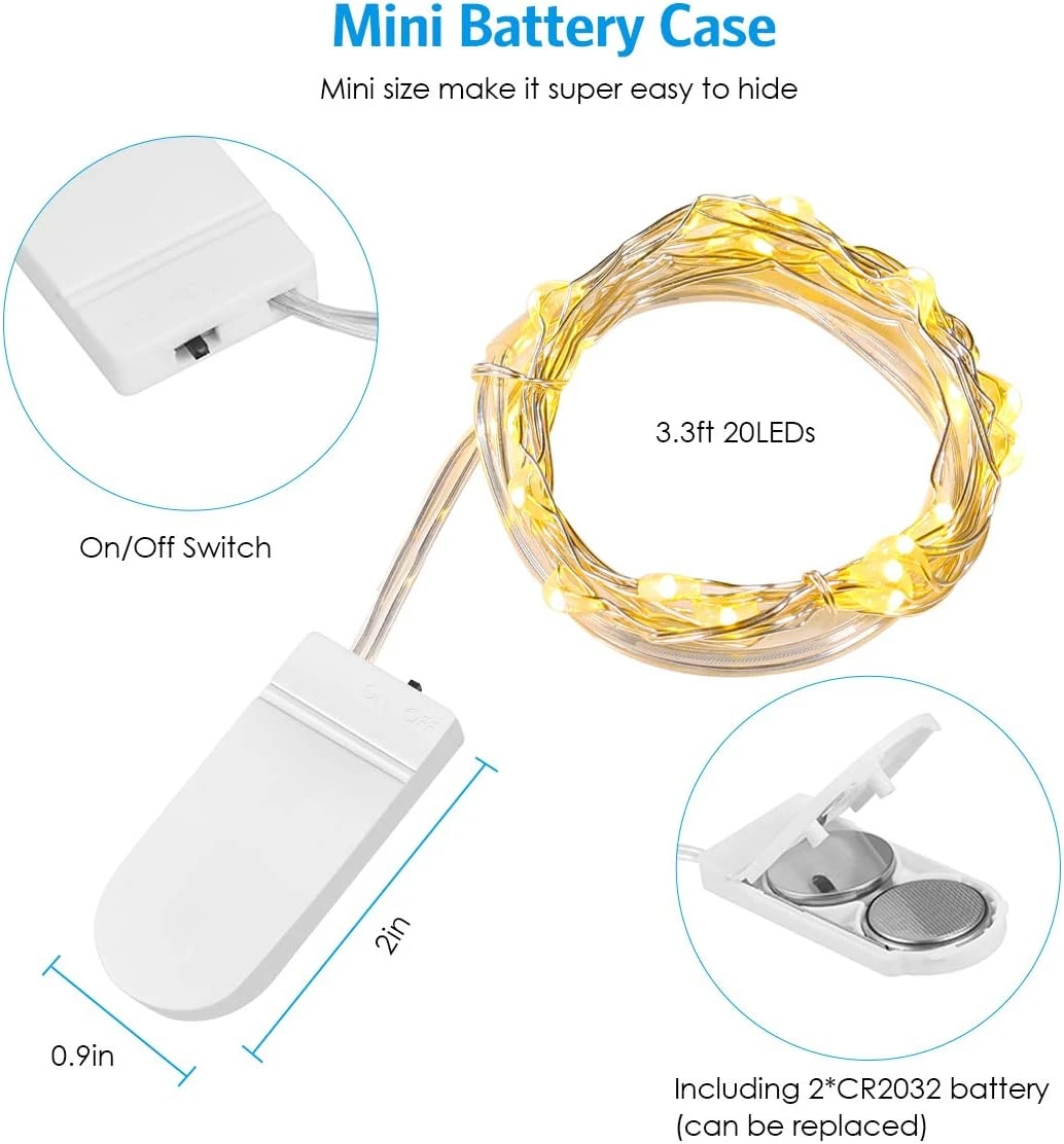 - Battery Operated – The DIY LED string lights are powered by 2 AA CR2032 batteries, which are energy-saving, environmentally friendly, low heat generating.
