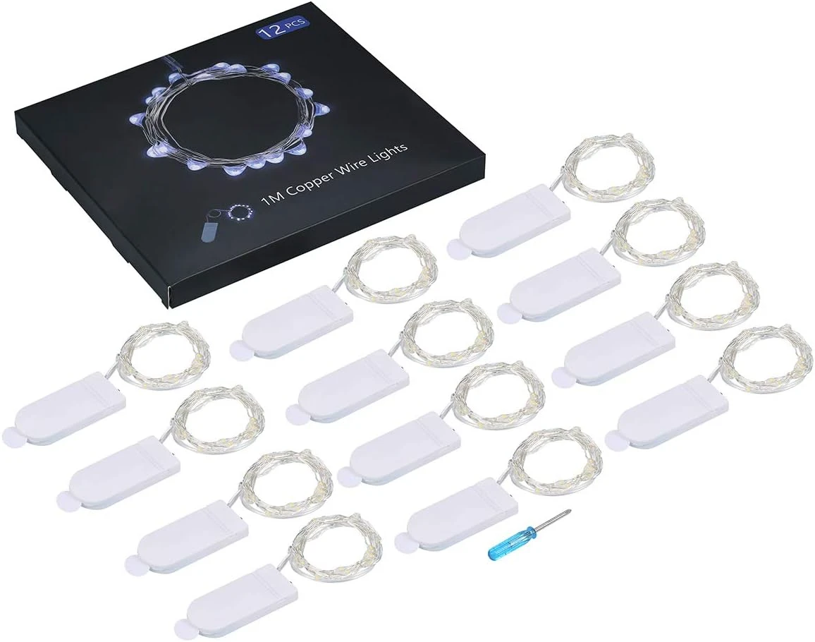 - Pack of 12 Units – 3.3ft / 1m extra thin string with high quality 20pcs micro LED starry lights. They glint like fireflies in the dark. Ideal for decorating your home, desk, party, etc.