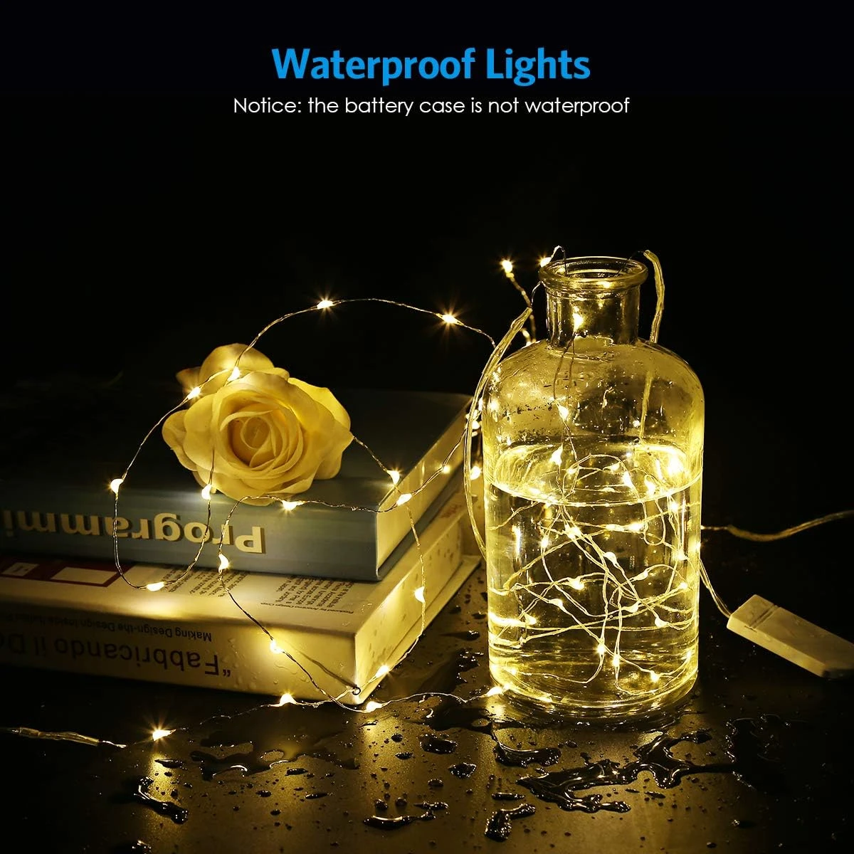 - Water Resistant – AMIR decorative fairy string lights insulated copper wire and fully sealed LEDs make it possible to immerse the copper wire part into water. The battery box is not waterproof,please place it properly.