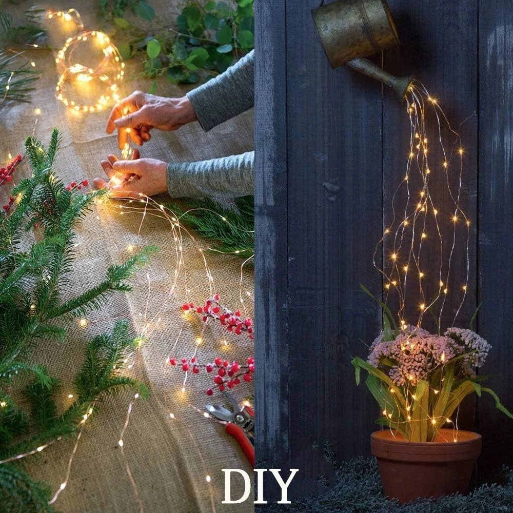 - (Watering Can not included) DIY & Waterproof : Upgraded 10 Strands 200 LEDs fairy copper wire string lights can be easily bent and shaped into any shape as you like. IP65 Waterproof design ensures the waterfall string lights withstand rainy weather condition, perfect for indoor or outdoor usage.