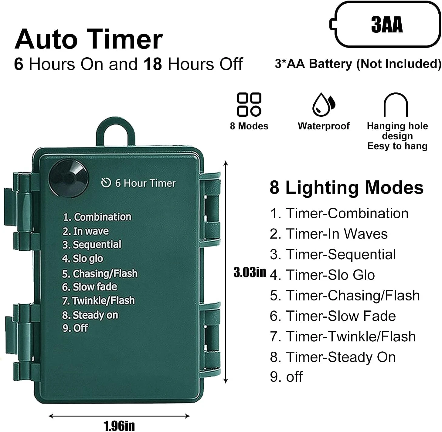 - Timer Function: Built-in timer (6 hours ON and 18 hours OFF) will free your hands to turn on/off the Christmas lights and keep battery last as long as possible.This battery operated string lights is warm white, no harsh on eyes at night, comfortable and relaxing.