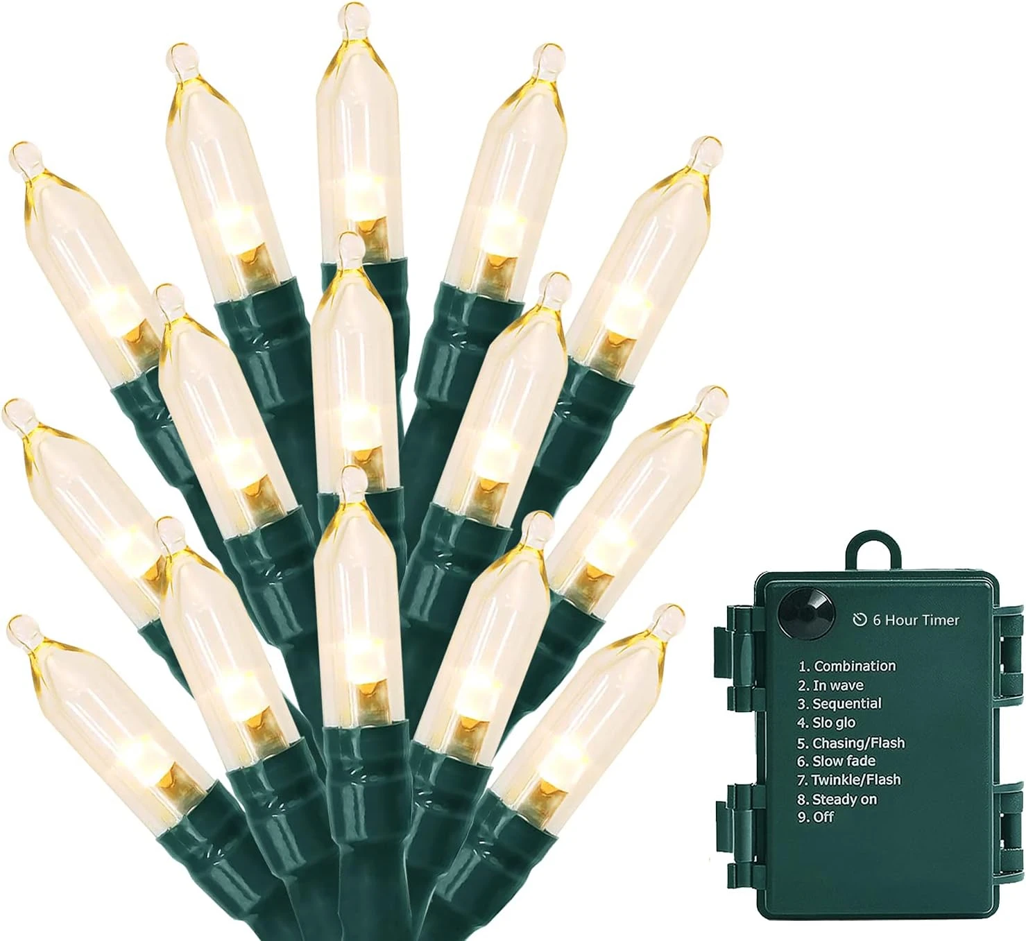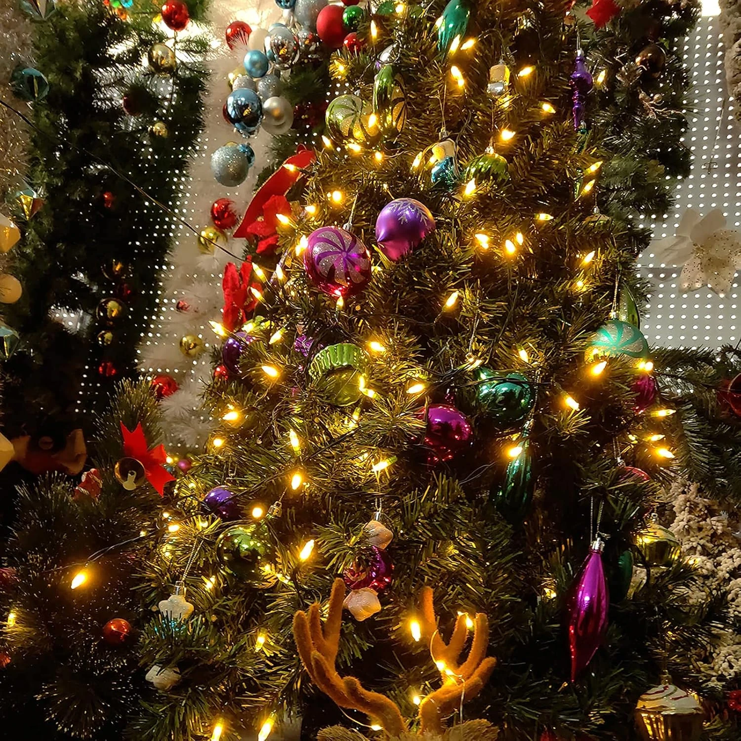 - Green Wire Christmas Tree Lights: Add a soft, festive glow to your decor with 100 LED Warm White Mini Christmas Lights. Enhancing indoor and outdoor lighting in every holiday season. The total length of battery powered string lights is 33ft,suitable for Christmas trees from 6-51 feet.