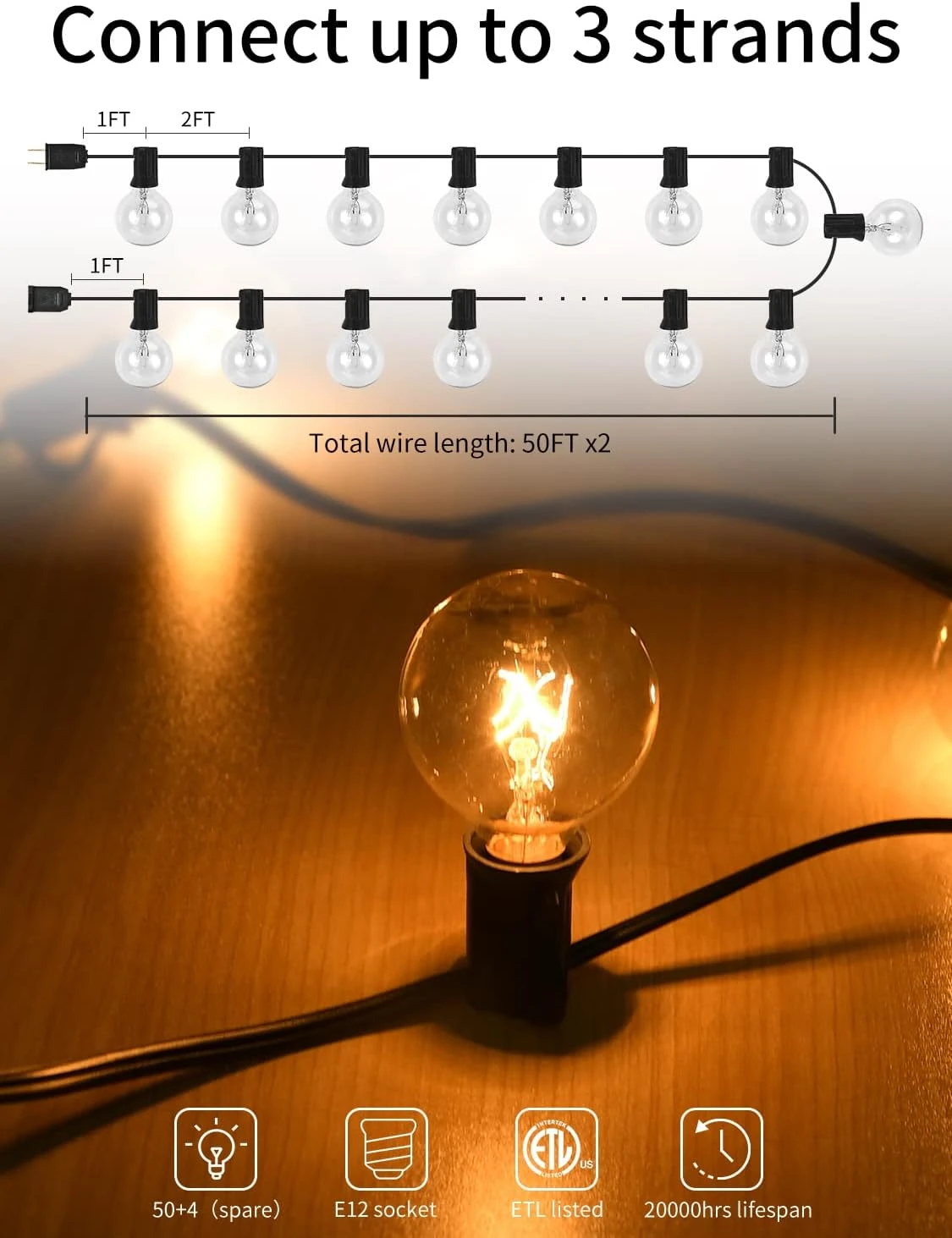 - 【Create Romantic Atmosphere】The patio string lights with glass lamp housing will not turn yellow and darken with the use of time like the plastic lamp housing, 2300K can still emit soft and warm globe lights that can be placed on the terrace, creating a relaxing and romantic retreat for your family. Buy this product you will get two strings of 50FT light string, you can connect them up or use them in a different place as you need, flexible and practical.