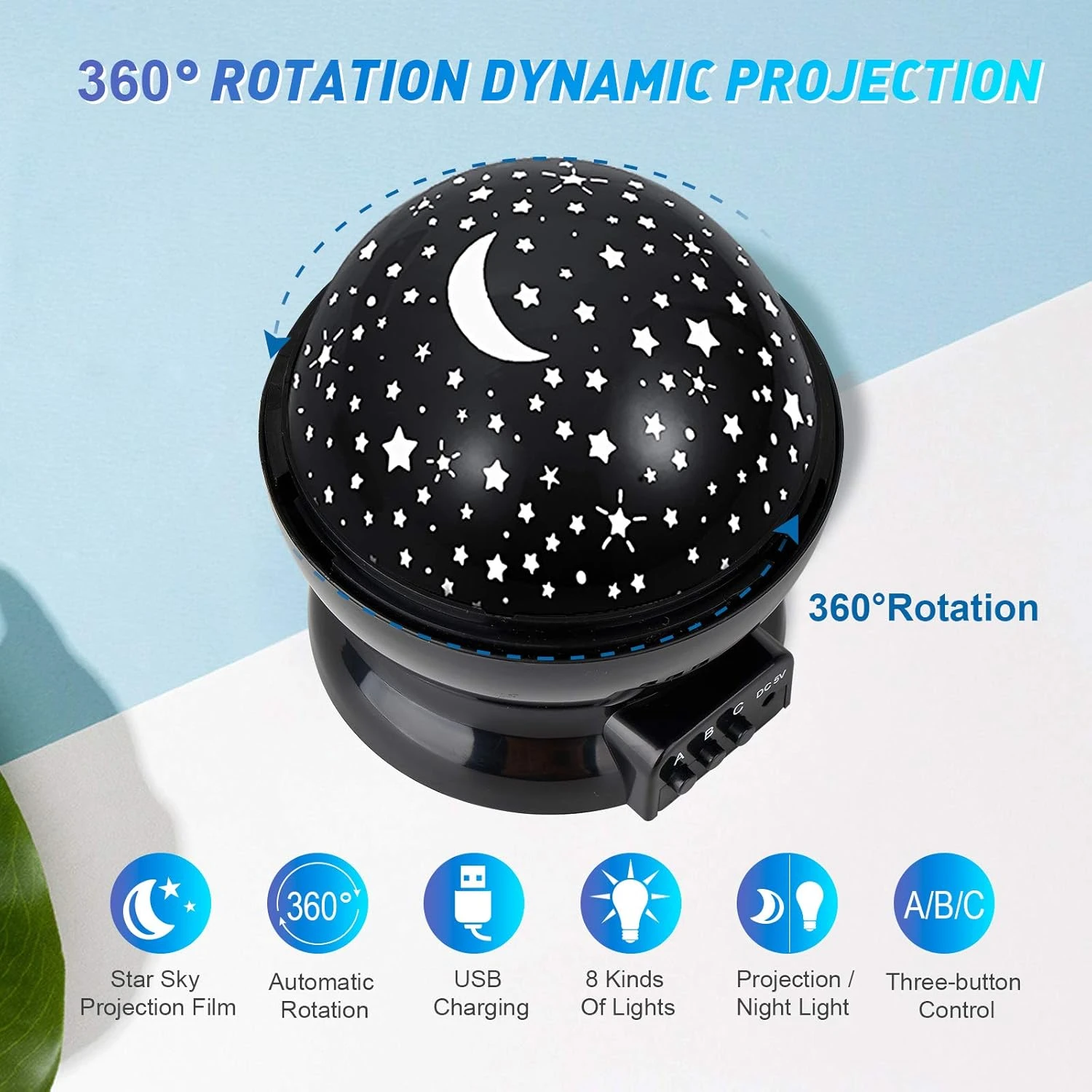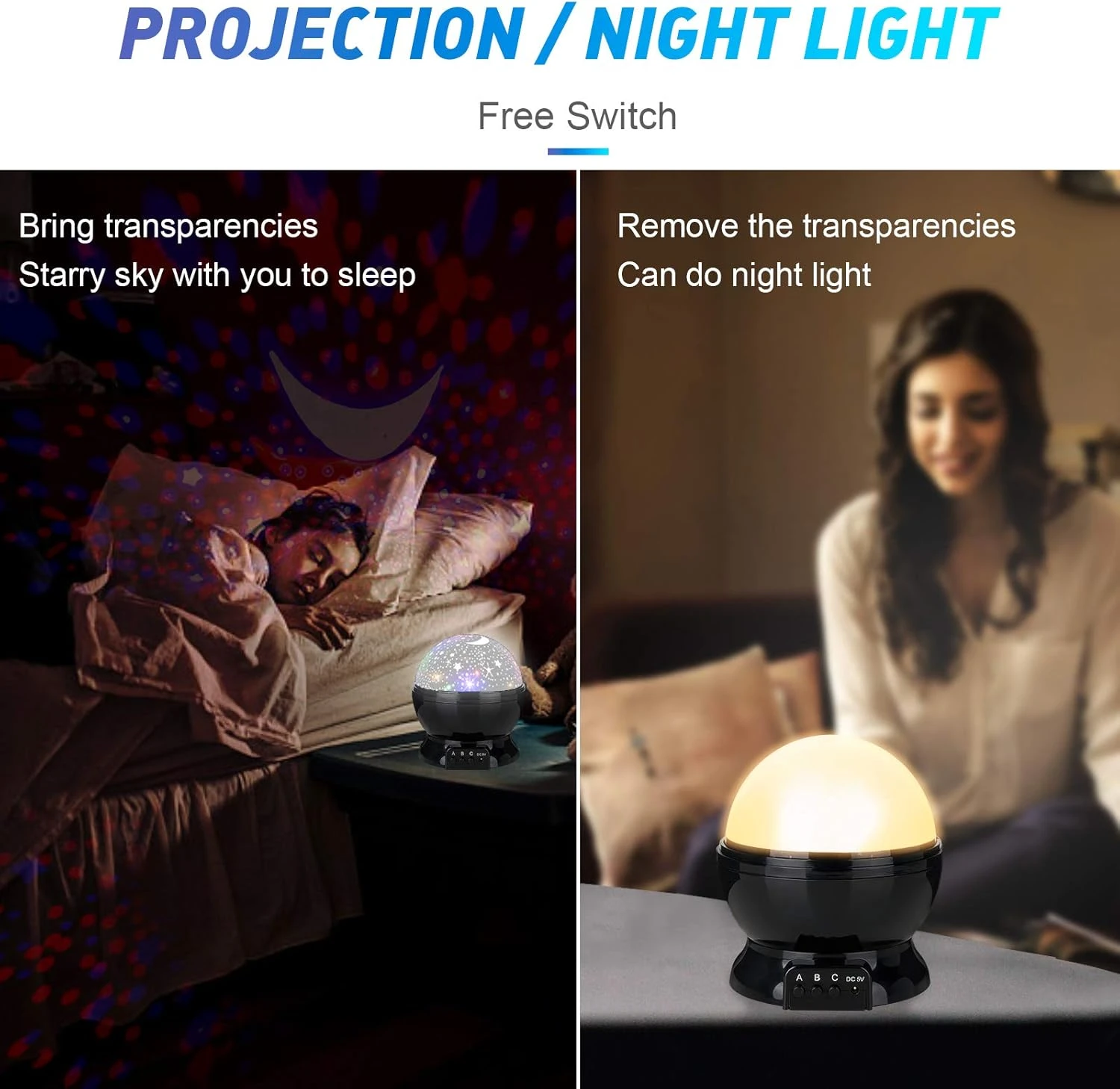 - MORE THAN ONE: There are popular Star Sky Moon Cover +Cosmos Cover Projector lamp, they can help you put the universe back home, give you a piece of the sky changes color. The baby night light not only gives your kids universal Astronomical Science and enhances the capacity of good assistants hands, but also gives your couple to create a romantic surprise.