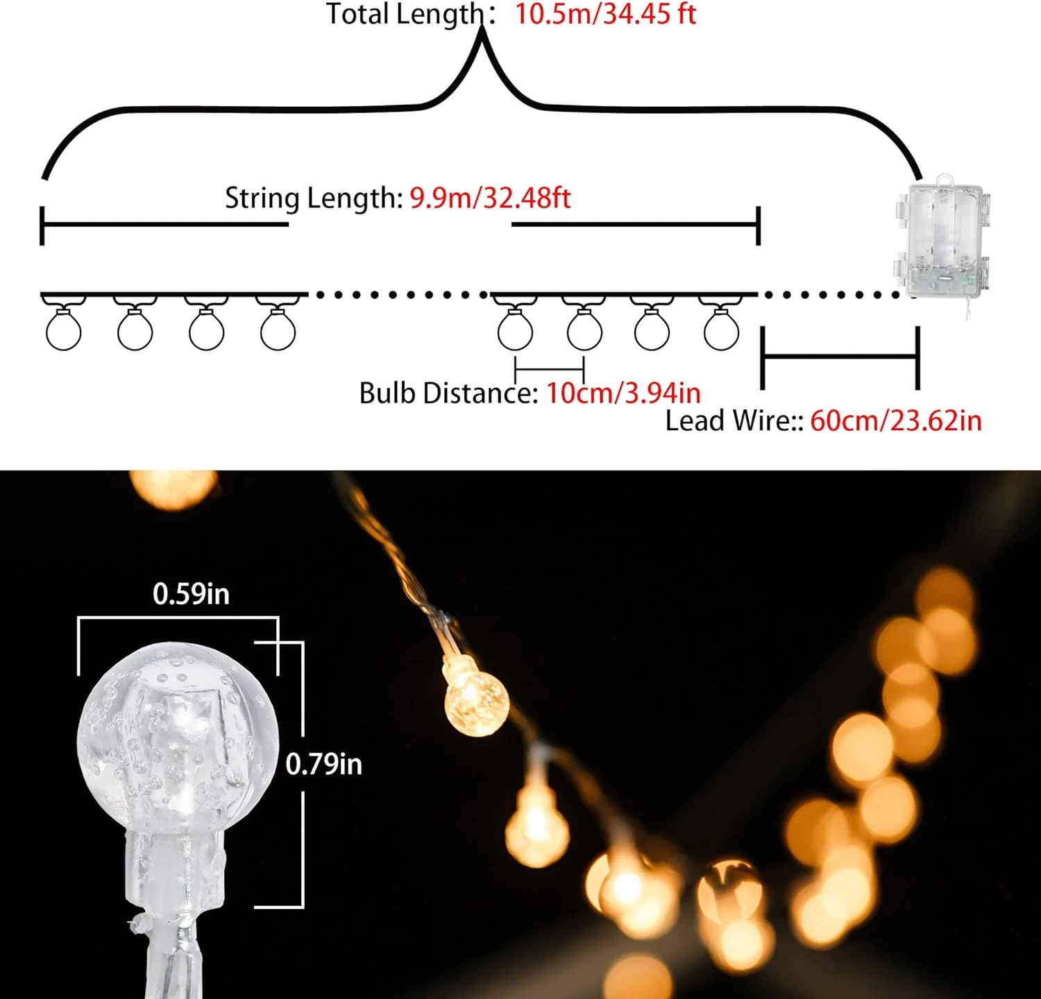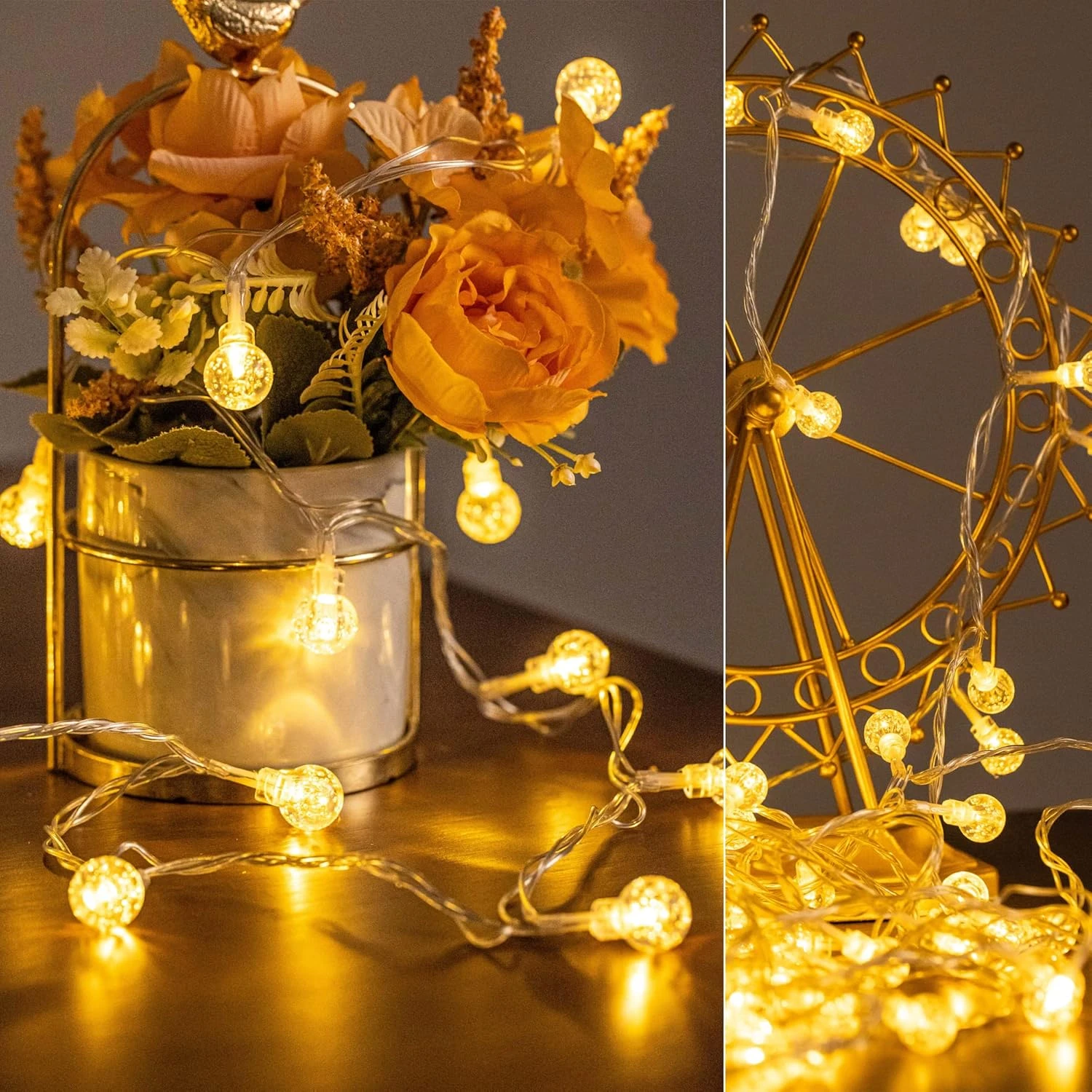 - 💡【LED Globe String Lights】The Globe string lights indoor for bedroom have 100LED trasnparent bulbs in total 35ft, the warm white string light will create a warm and romantic atmosphere for you and your family.