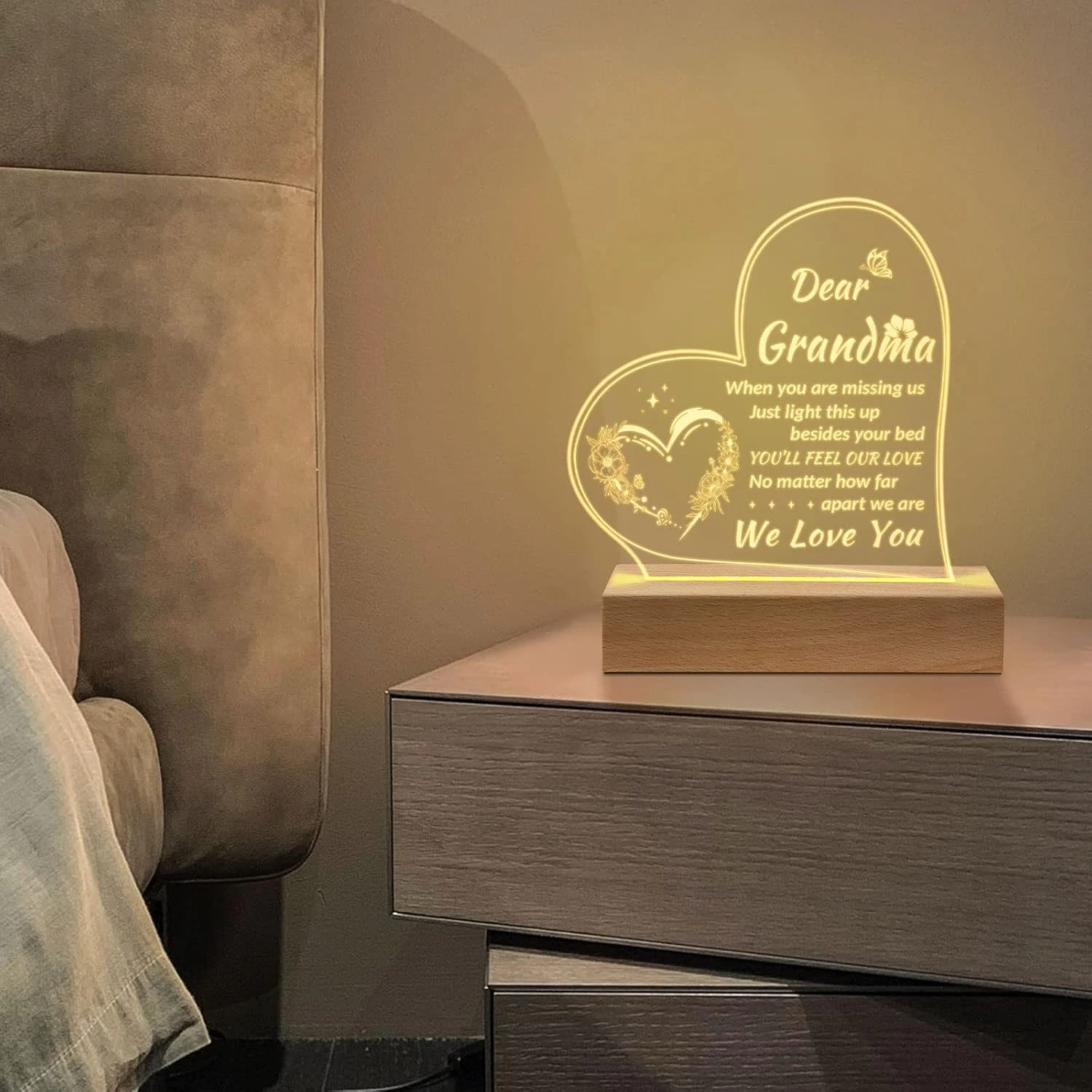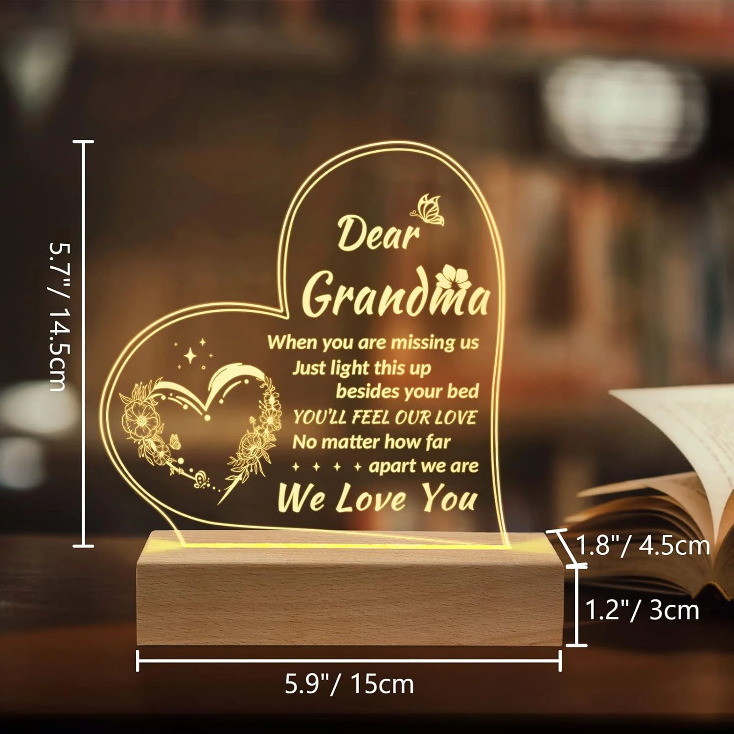 - 【Grandma Gifts for Any Occasion】- Show grandma how much you love her with this night light with heart-warming words. It’s perfect as birthday gifts for grandma, mothers day gifts, retirement gifts, thanksgiving gifts, and Christmas gifts for grandma. She will cherish it forever.
