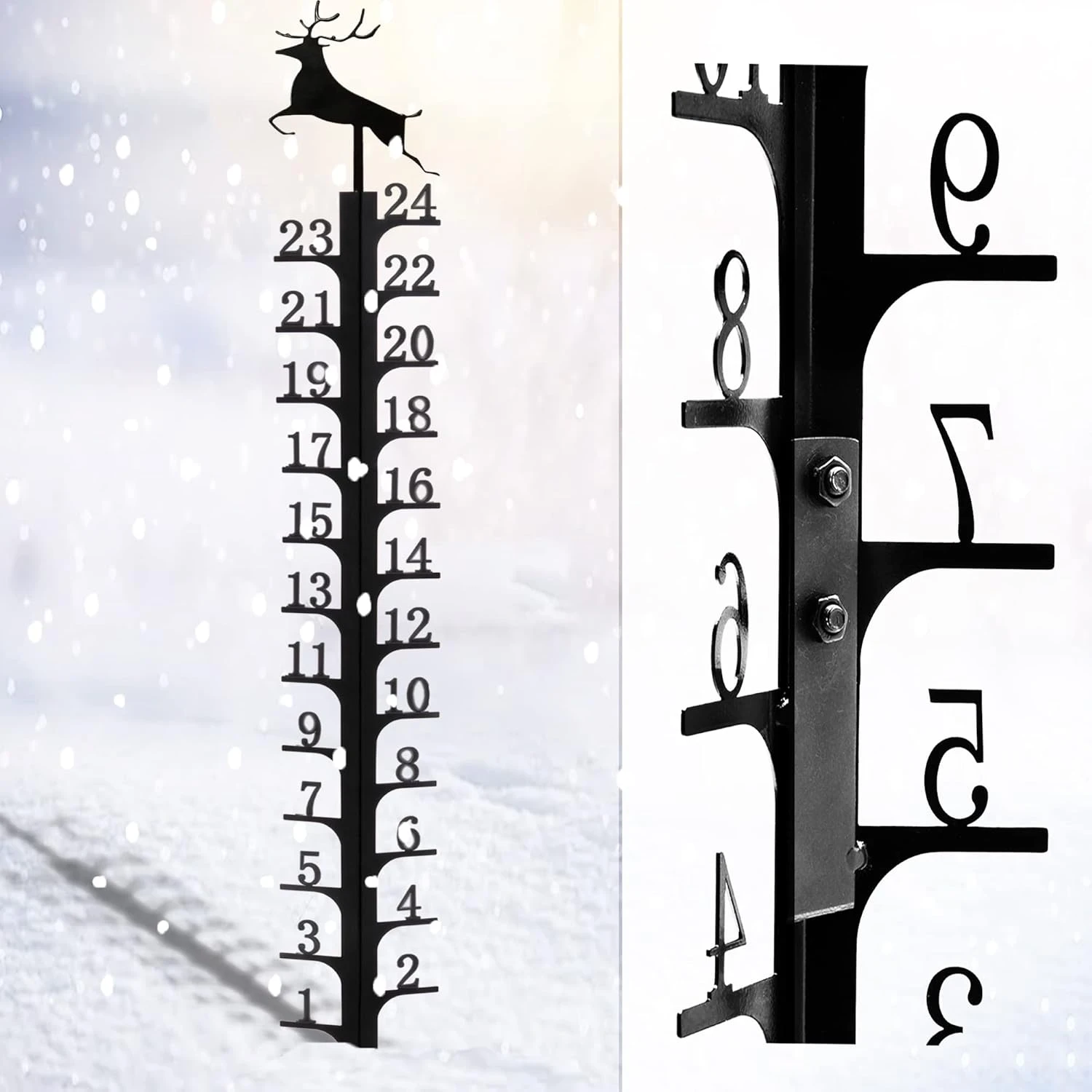- ❄【Christmas Outoor Decorations】The Elk on the snow measuring stick and the exquisite design of the scale make it a beautiful sight outdoors. This Elk metal snow gauge lets you know how much snow has fallen in your yard. Christmas Elk decorations have long been a part of holiday decor.