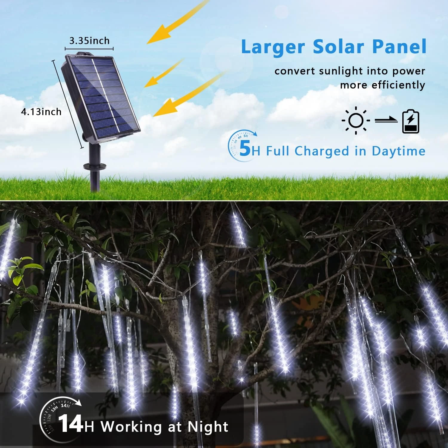 - ❄️Dreamy Meteor Shower❄️ Each beads of the lights fall in sequence then have a slight delay on each tube, just like meteor shower or falling snow across the sky, performing a beautiful show. Blingstar solar meteor shower lights not only suits for market engineering lighting, urban and architectural beautification, but also great for family house, garden, front yard, roof, porch, fence, tree decoration, adding holiday ambience.