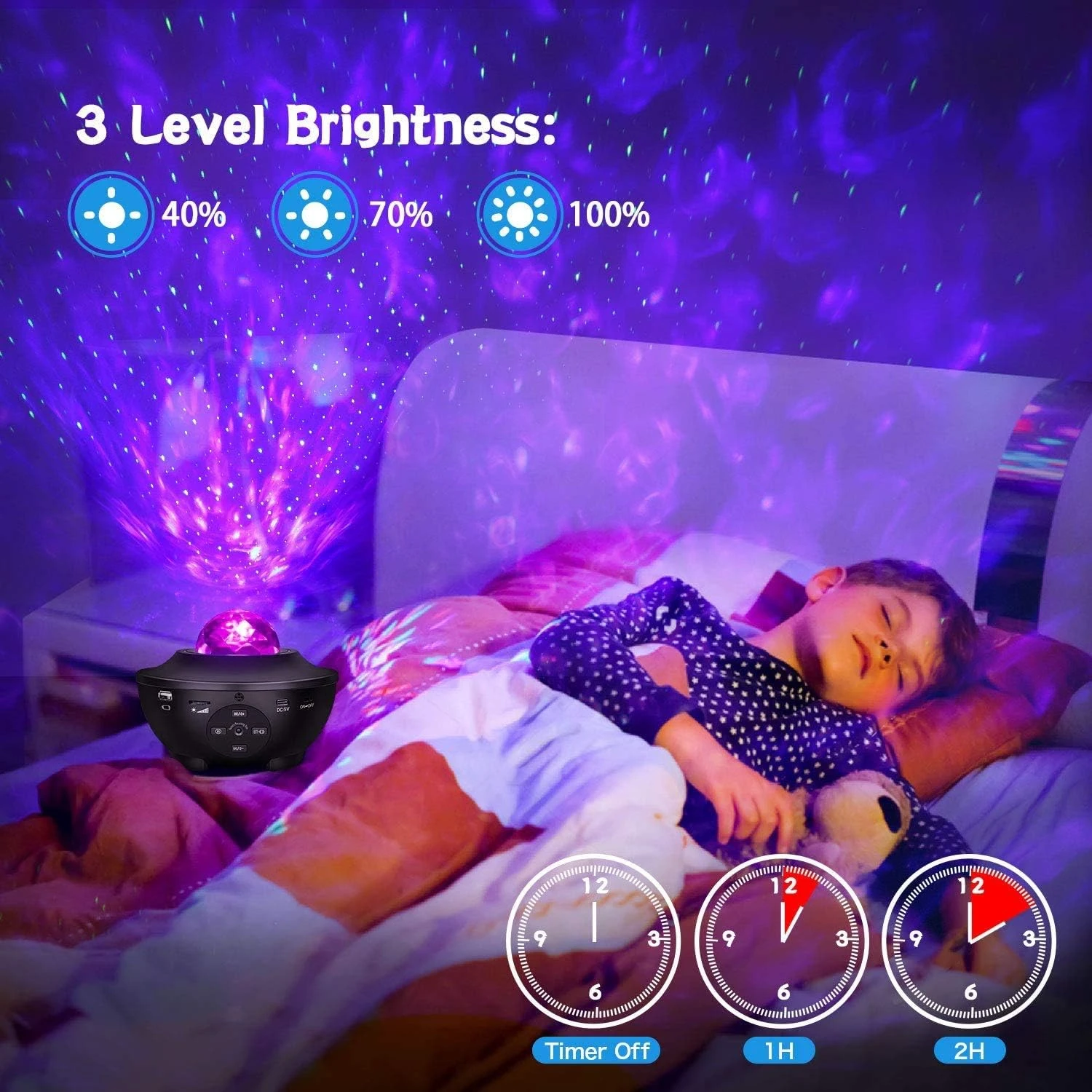 - 【Auto-off Timer Function】With Built-in 1 hr, 2 hrs , 4 hrs auto-off timer, it shuts off automatically at a preset time, and don’t worry about forgetting to turn off the galaxy lights every night while listening to music and enjoying a romantic skylight projection. It can create a warm and quiet sleeping environment to help you and your child fall asleep quickly and smoothly.