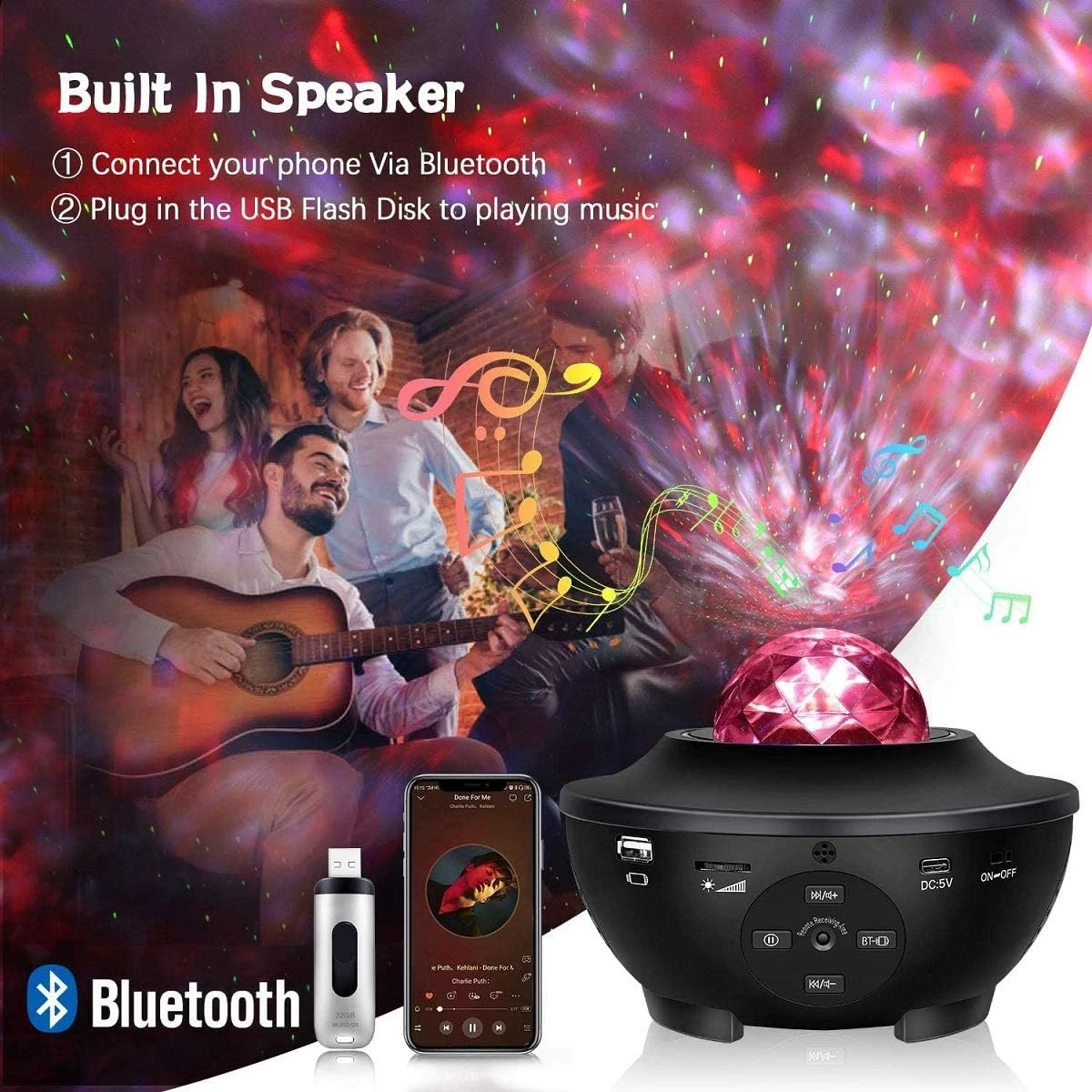 - 【Built-in Music Speaker】 You can listen to your favorite music via Bluetooth or USB slot, and play lullabies, ambient sounds, classical, relaxing and mediating music through the galaxy projector lights show you a relaxed, romantic and wonderful atmosphere of space projection.