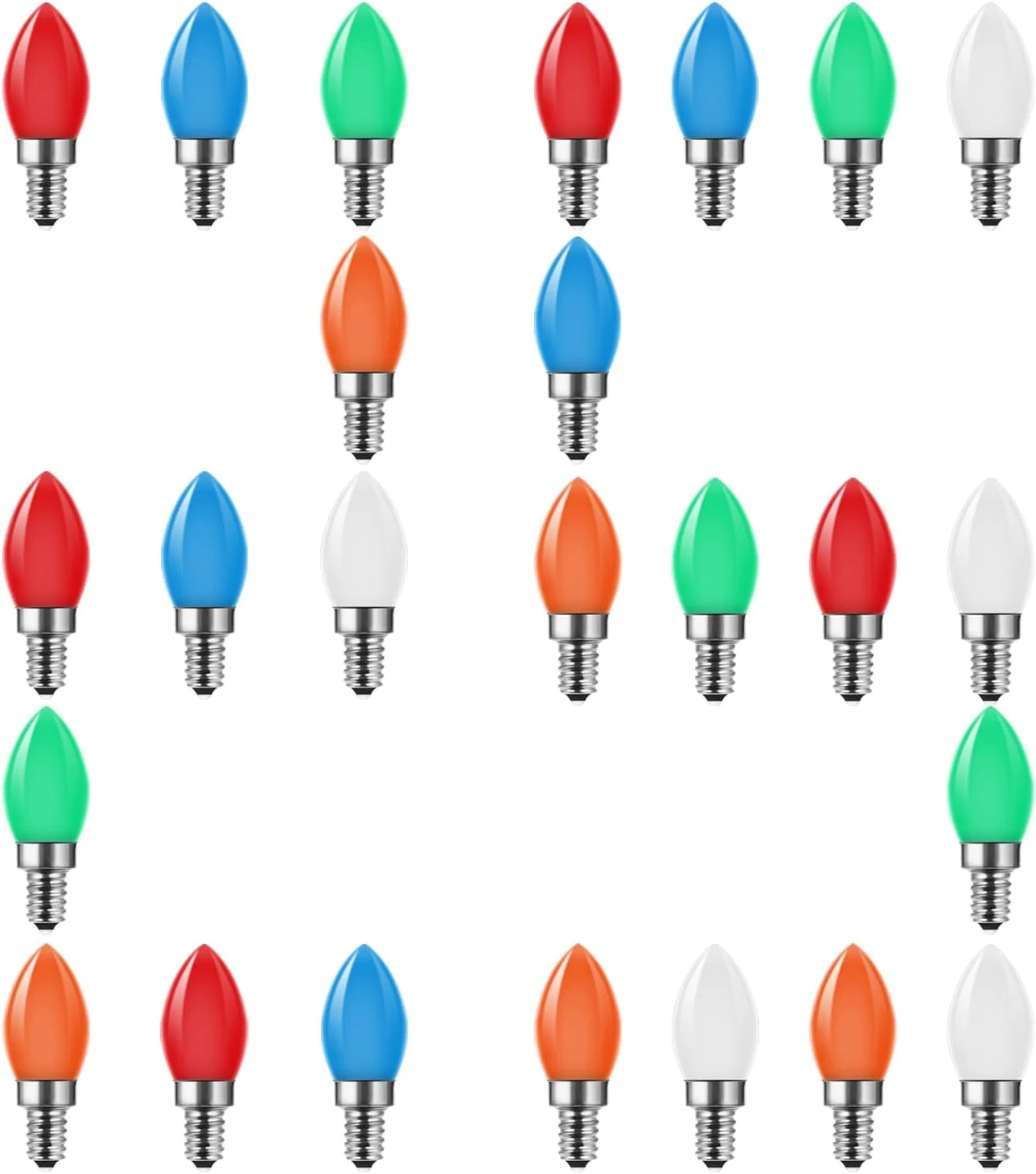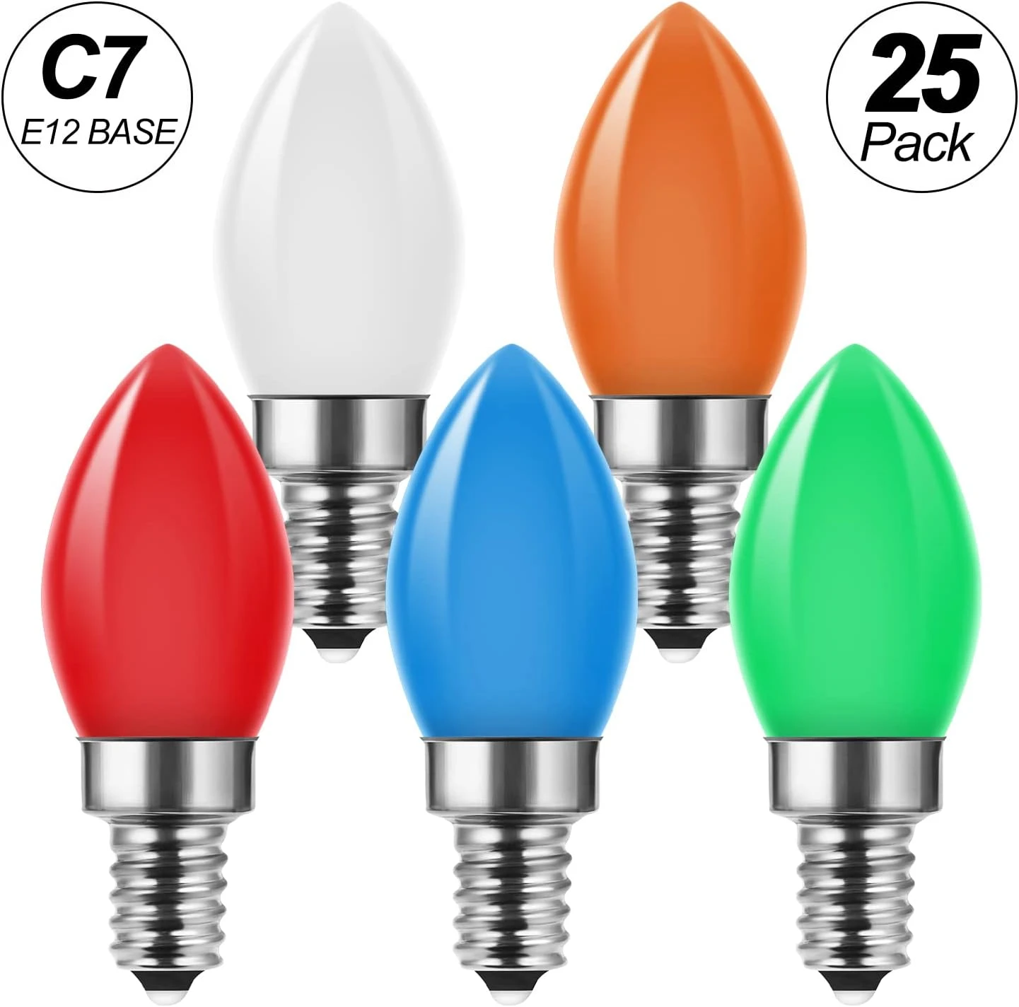 - 💡25 pack C7 multicolor Christmas replacement light bulbs, multicolor incandescent light bulbs (red, blue, green, orange, white). ideal as Christmas lights, christmas party decorations ​and more.