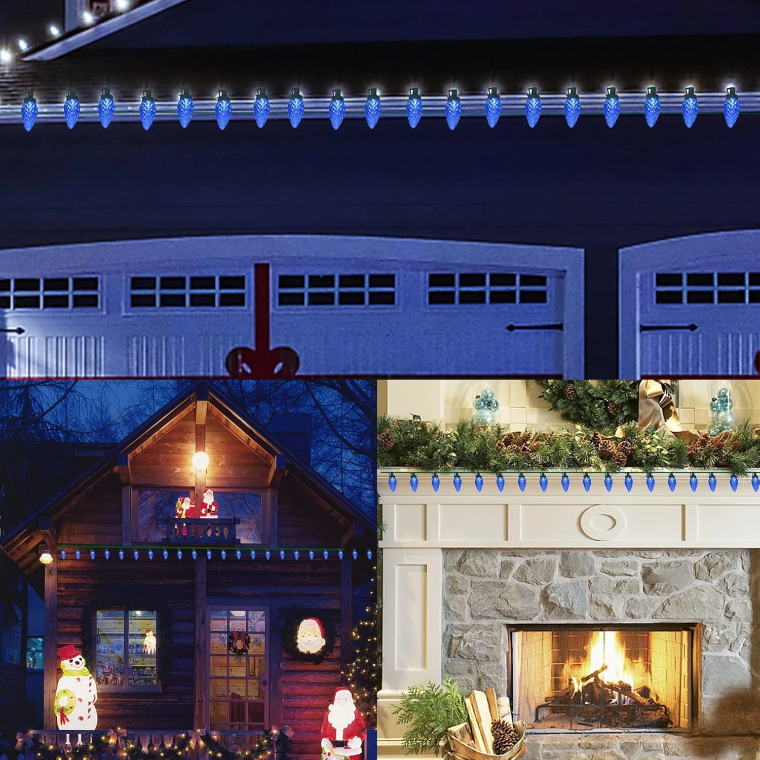 - C9 Christmas Lights: Old-fashion Christmas blue faceted C9 lights, creates a warm festive atmosphere, surely lights up your room and house. High quality UL certified products ensure the safety of you and your family.