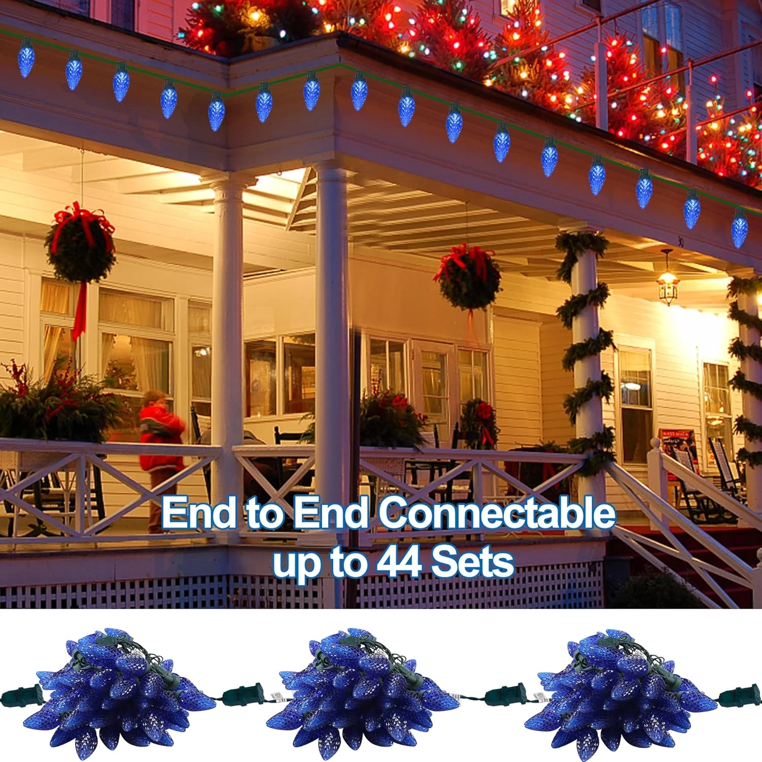 - End-to-end Connectable Lights: Each C9 Christmas light set comes with end-to-end plug and stackable plug, can be connectable up to 44 sets (2200 lights), expandable up to a long distance for you to decorate your large lighting area.