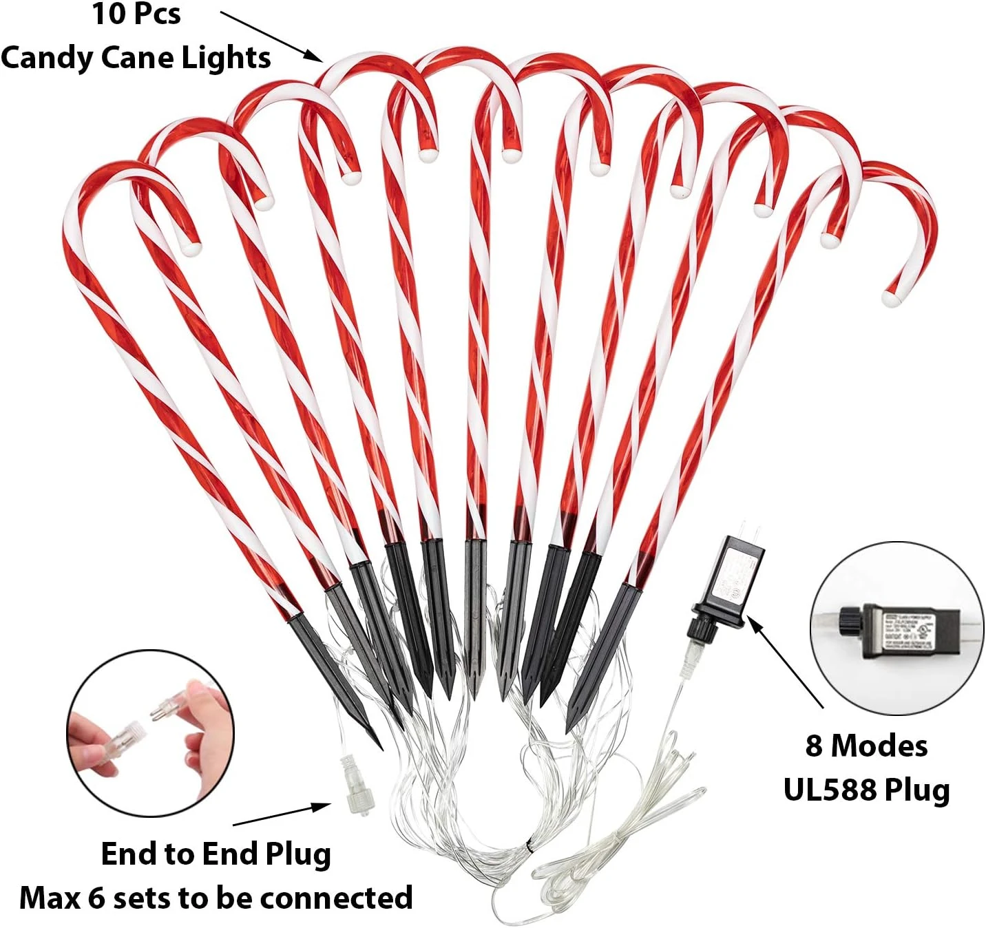 - Newest Version — The each candy cane lights is 21 inches tall with 6 LEDs lights, Space between each cane: 50cm/19.7in, Plug leading length 3m/9.8ft, total length 26.3ft and include 60 LED bulbs.