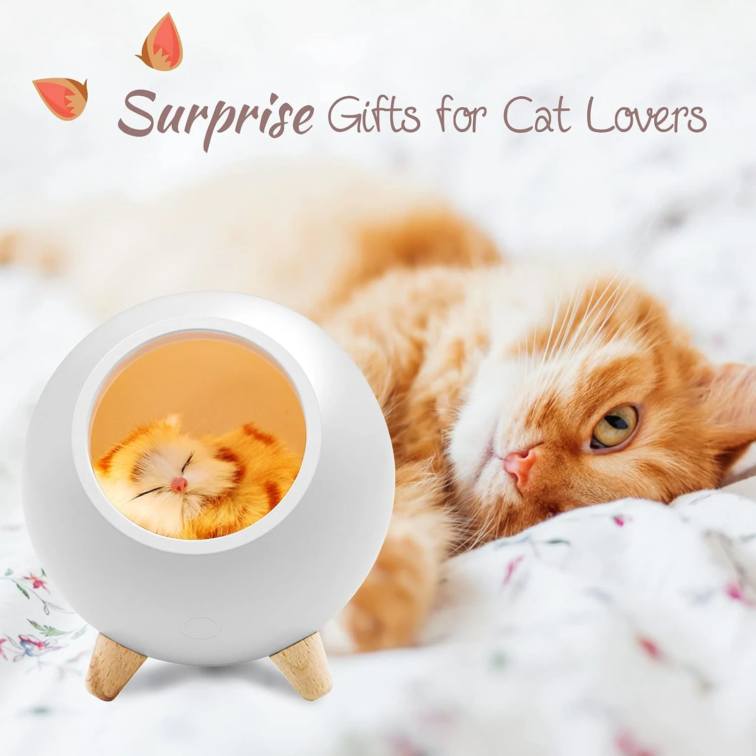 - 【Suprise Gifts for Cat Lovers】 Super cute baby safe cat night light made by BPA-free gives a pleasantly touch. A vivid sleeping pet cat with fluffy tactile sensation, a warm atmosphere and soft light gives you visual enjoyment which is a great choice for kids’ room decor, and the cat inside is removable.