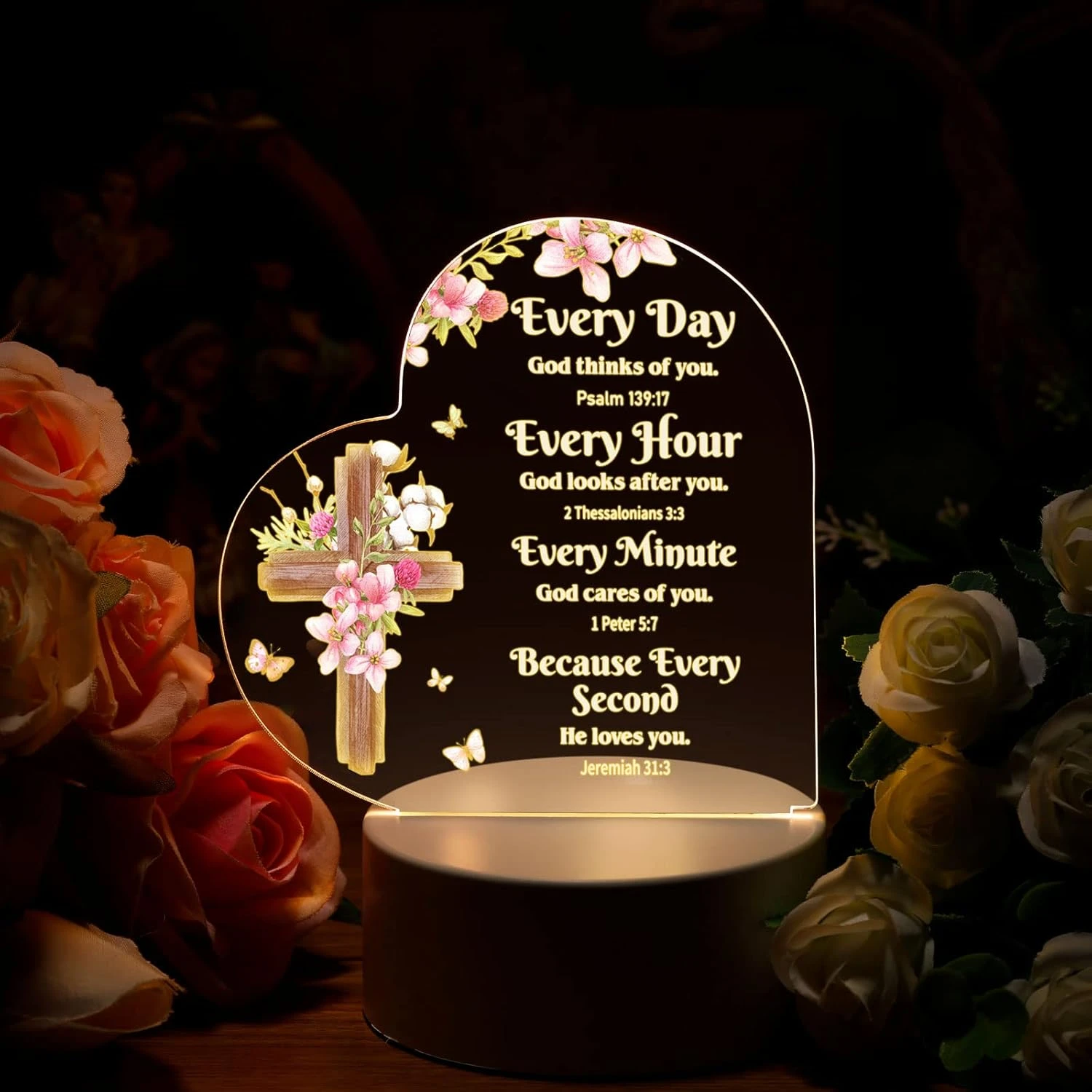 - Inspirational Christian Gift: Christian light in the shape of heart with warm words and bright flower is a nice gift for your family, friends, teachers or others; The warm light and intimate design can make them feel power and warm, they will face the difficulties in life bravely