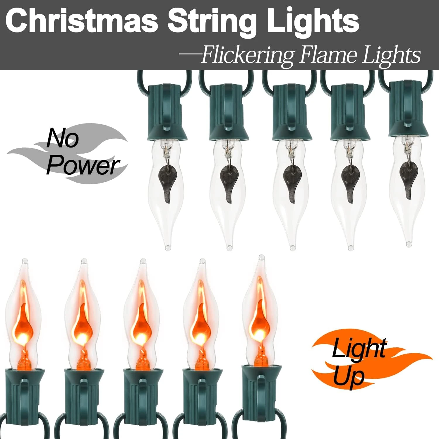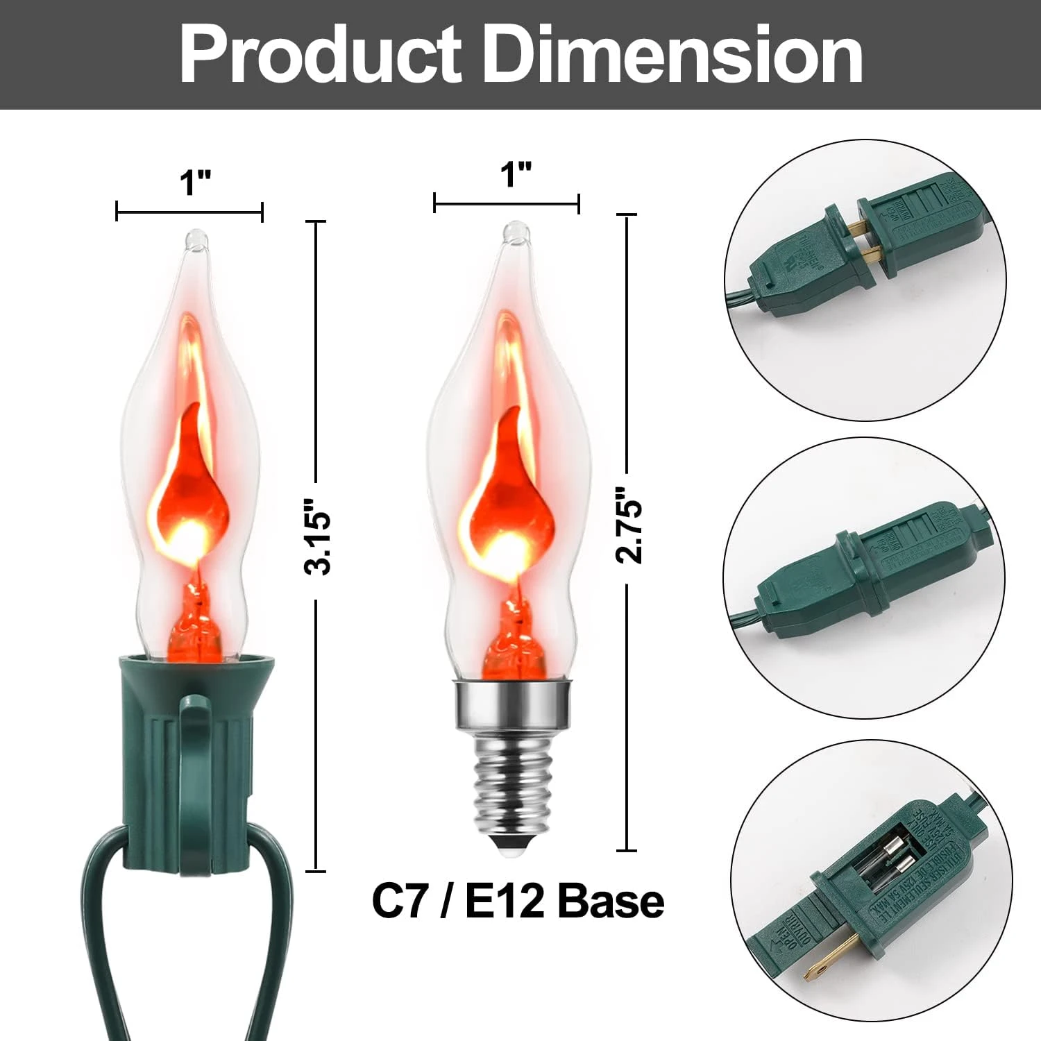 - 💡【String Lights Usage Parameters】C7/E12 candelabra base, 10 flame bulbs per string, plus a spare bulb.10Ft long one string, connect up to 43 strands string lights.
