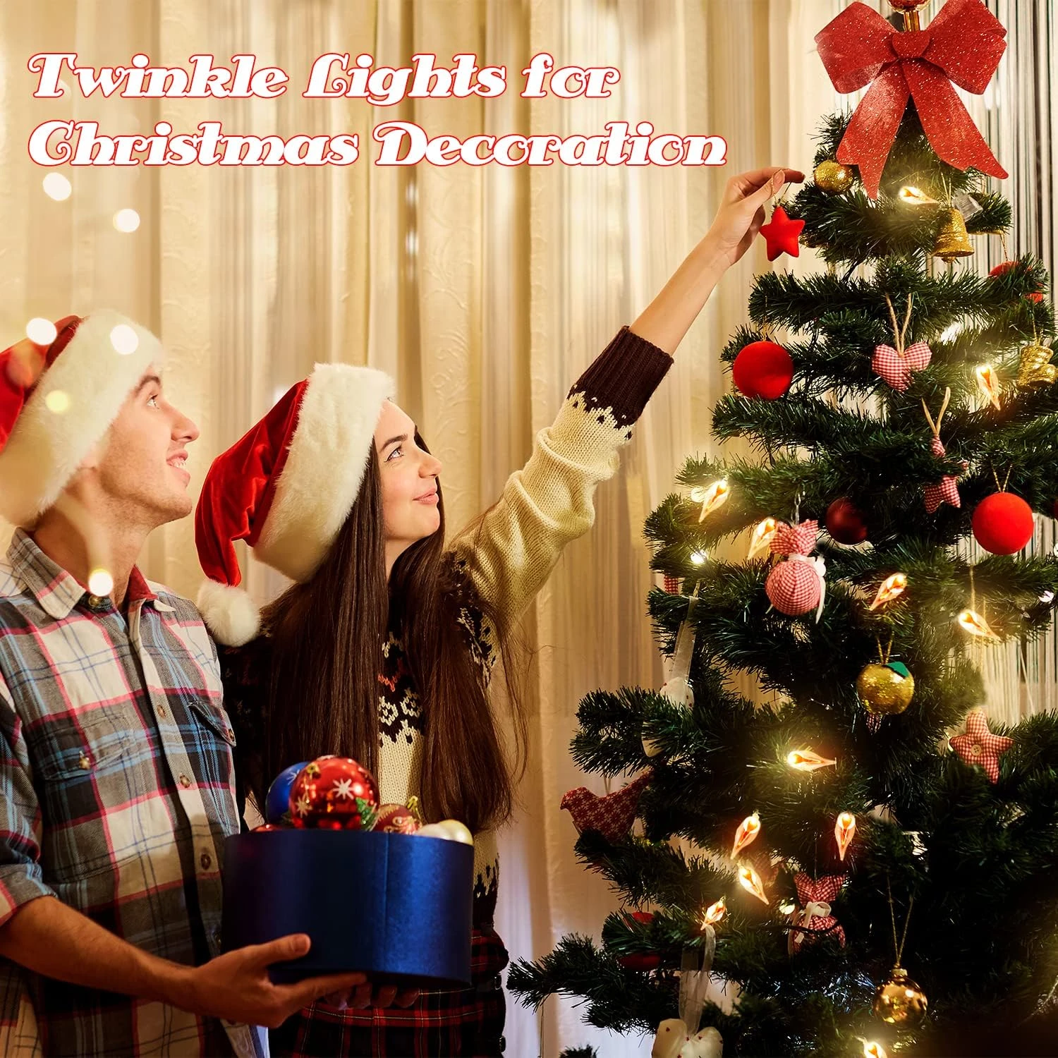 - 🔥【Distinctive Realistic Flame Light】This flame shaped string lights simulates jumping flames, like a real candle flame is flickering and dancing, which is a great alternative for candlelight. This distinctive Christmas string lights let you decorate and place anywhere as you want without risk of burning.
