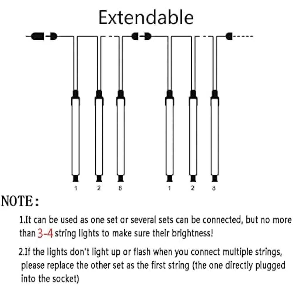 - [Extendable Christmas Decorations] Lauzior icicle Christmas lights outdoor can be used alone or in series, the best effect is 4 strings in series. If the whole light with 8 tubes can’t come light when you connect many sets, pls check the female and male connectors are linked correctly.