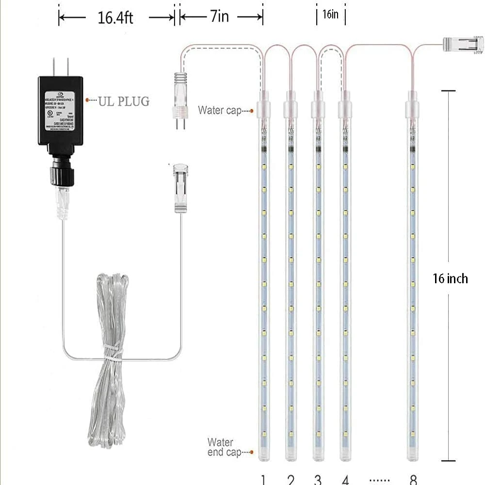 - [Longer Length & Brighter Xmas Lights]Lauzior outside Christmas lights have 8 tubes. The tube length is 16 inches/40cm, longer than 12 inches, makes the entire meteor shower’s light wider. 32 LEDs per tube, 256 LEDs in total, more LEDs make our meteor shower lights brighter than others. Longer length and brighter icicle string lights let you fully enjoy the joy of family time.