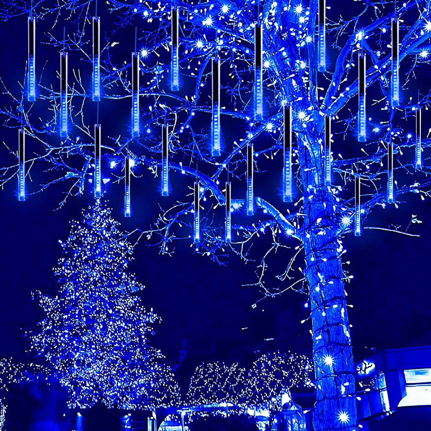 - [Unique Christmas Lights Outdoor]Lauzior meteor shower lights, these LED lights light up quickly one after the other, like a meteor shower or falling rain in the night. Meteor shower means and symbolizes romantic happiness and good wishes, wishing every customer who uses our outdoor Christmas lights a happy Christmas. You can hang them in many places, the more you string the more spectacular. E.g, you can connect about ten sets on the tree and they will be very eye-catching and cool.